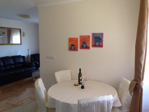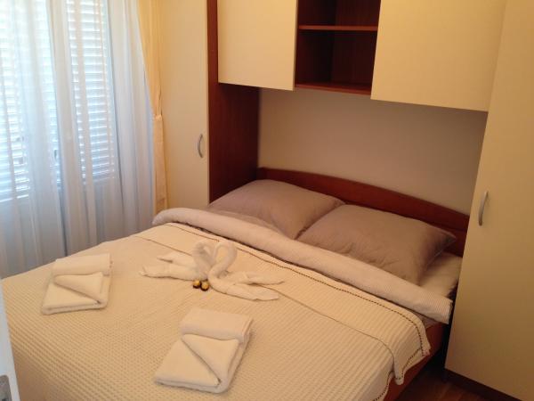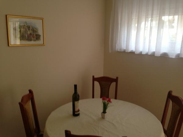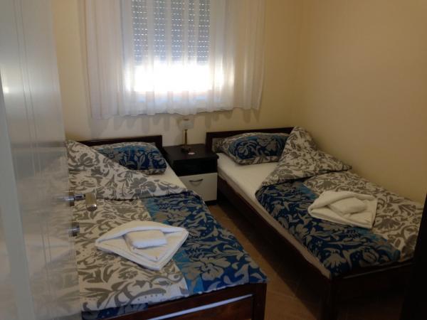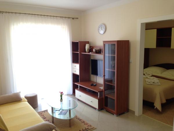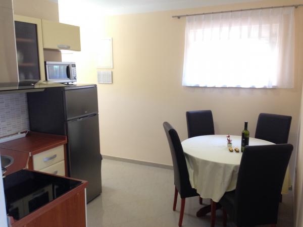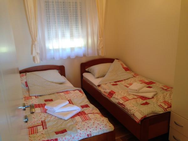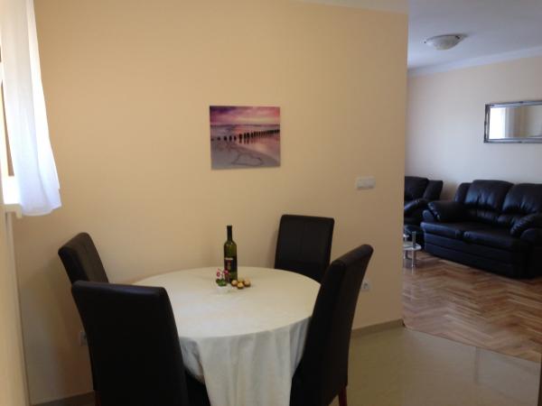 Taxe de sejour est inclus dans le prix.Les appartements se composent d'une entrée, deux chambres, salon, cuisine, salle à manger, salle de bains et balcon. + Parking. Les appartements sont situés dans la partie centrale de la ville loin de la boutique à 100m de la plage, des restaurants, des promenades d'environ 400m. La distance du centre de la ville de Rab (la partie historique de la ville), est d'environ 4 km, où il ya des lignes de bus régulières, taxi et bateau-taxi, et peut marcher et nouvelle promenade le long de la côte. Le prix inclus: taxe de séjour, Internet - (via Wi-Fi), téléphone - (pour les urgences), Cuisine - (entièrement équipée), Air (refroidissement / chauffage) TV-radio (service de télévision Max avec plus de 200 chaînes thématiques), coffre-fort, linge de lit, serviettes, savon, les services publics, nettoyage, etc