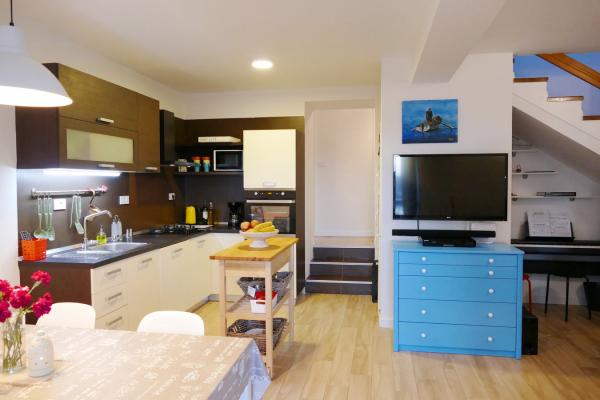 Taxe de sejour est inclus dans le prix.Les clients ont accès au wifi, à la Smart TV avec Netflix et aux services de streaming Prime Video, SAT TV, piano, climatisation, lave-vaisselle, lave-linge, sèche-linge, cuisinière à gaz, four, micro-ondes, cafetière, grille-pain, fer et planche à repasser, sèche-cheveux, terrasse, parking. Il y a aussi l'essentiel (sel, sucre, huile, vinaigre, lave-vaisselle et détergents à lessive, shampooing pour les cheveux et le corps, baume, savon, linge de maison, serviettes).