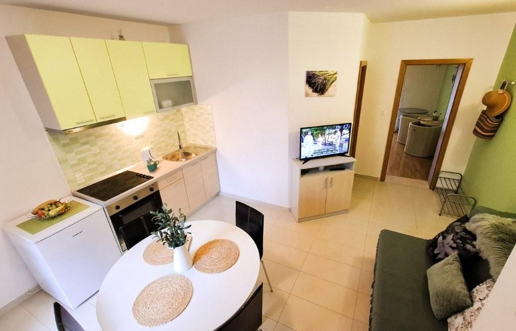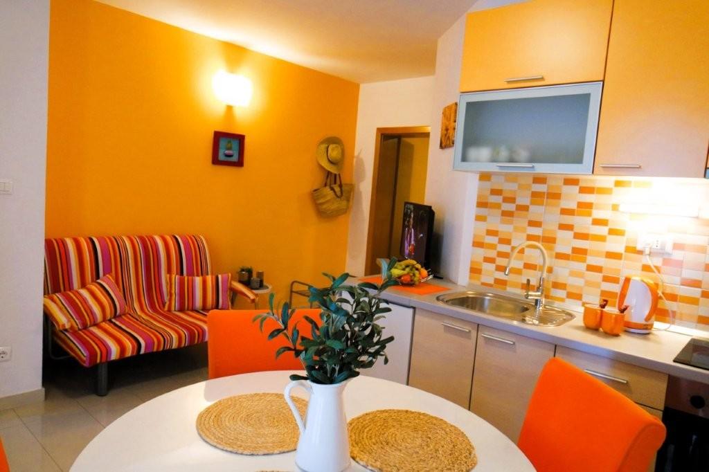 Les appartements équipés de façon moderne Harmonia sont le choix idéal pour des vacances confortables en famille ou pour les couples à la recherche d'un hébergement confortable près de la plage. À environ 200m de la plage de Nikola, dans un quartier attrayant de Baška Voda et non loin du centre avec une belle vue latérale sur la mer et la montagne Biokovo. Nous proposons un hébergement dans des appartements verts et orange, destinés à 2 adultes avec 2 petits enfants et dans un appartement turquoise pour 2 adultes avec ev. 1 enfant. Chaque appartement fait 40m2, a une grande chambre, un salon qui comprend une cuisine entièrement équipée, une table et des chaises et un canapé-lit, une salle de bains et une terrasse. Les appartements verts et oranges sont situés au premier étage de la maison familiale et disposent de grands balcons avec vue latérale sur la mer, tandis que l'appartement turquoise est situé au sous-sol de la maison sans vue sur la mer, avec une grande terrasse et des fauteuils lounge. Chaque appartement est entièrement équipé, respirant la propreté et les couleurs vives qui vous feront sûrement vous sentir à l'aise et passer de bonnes vacances.