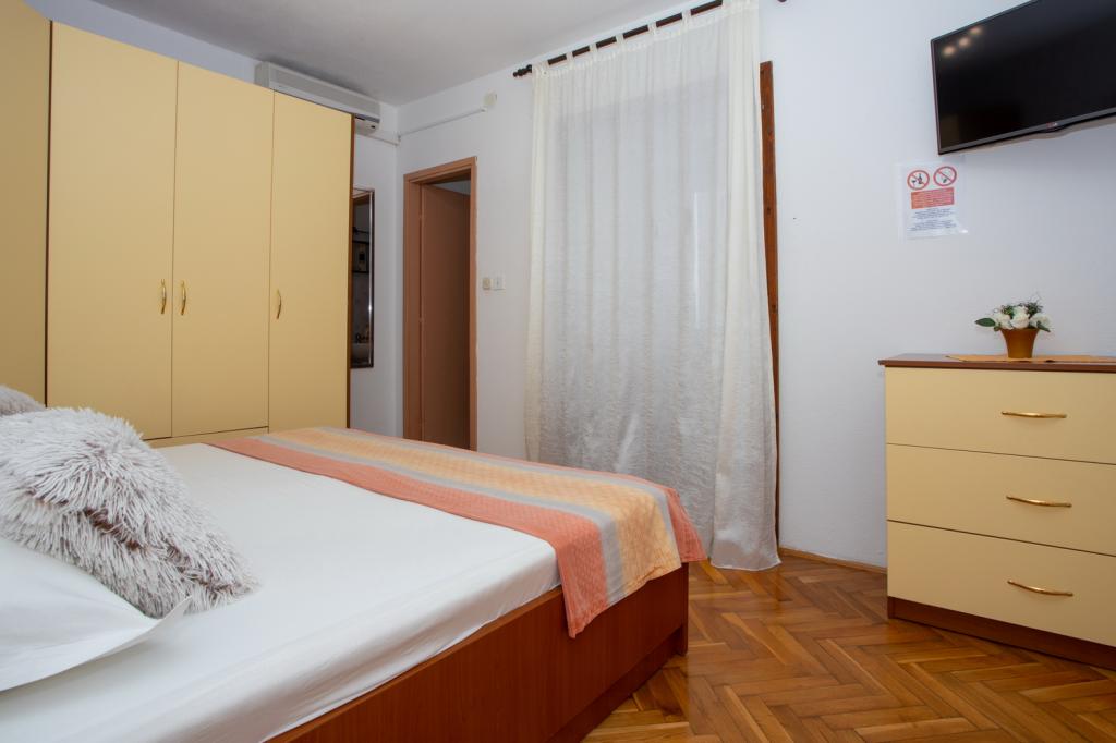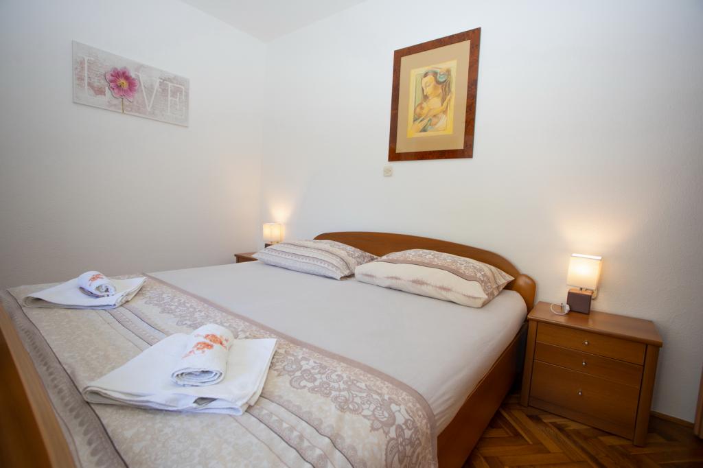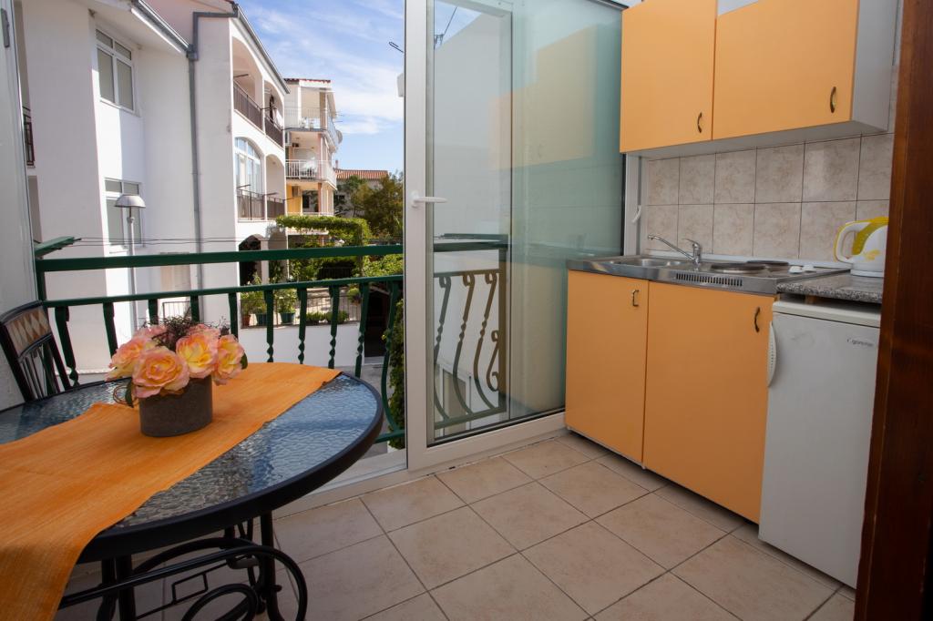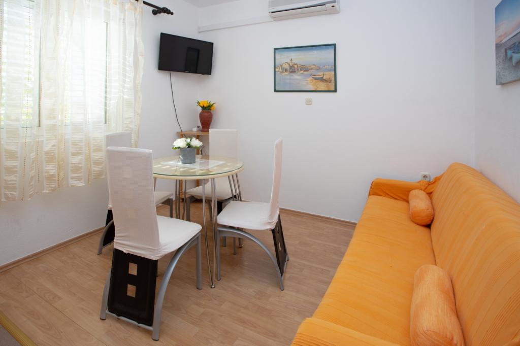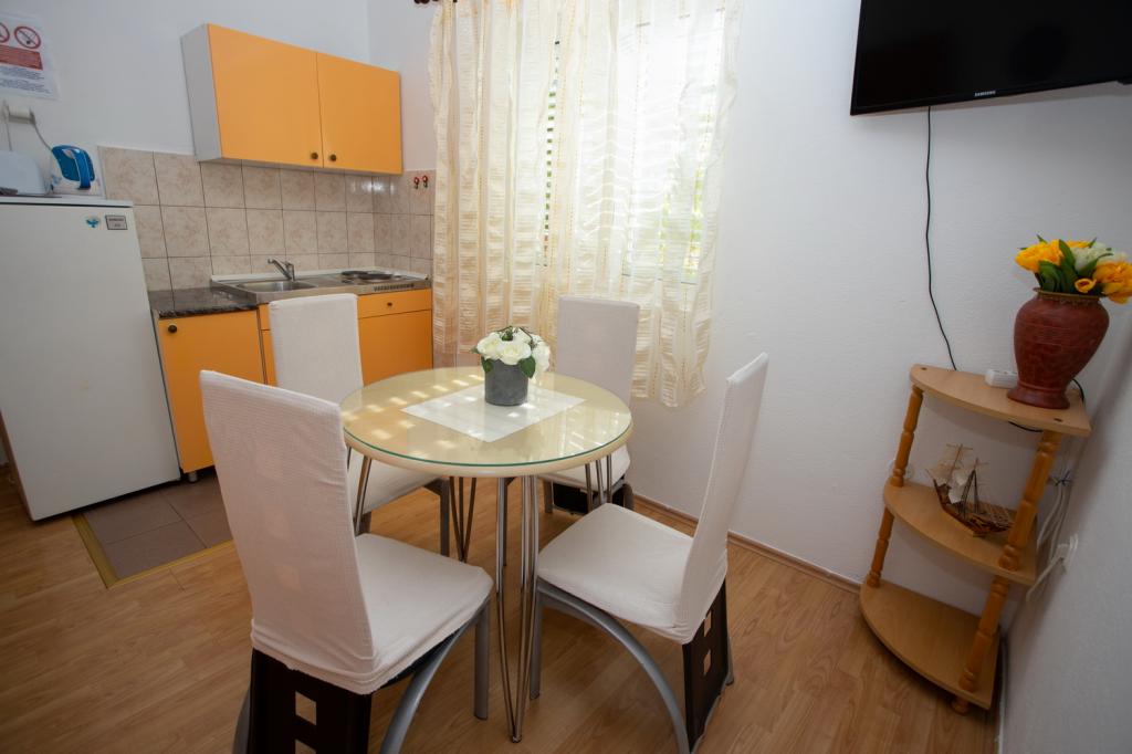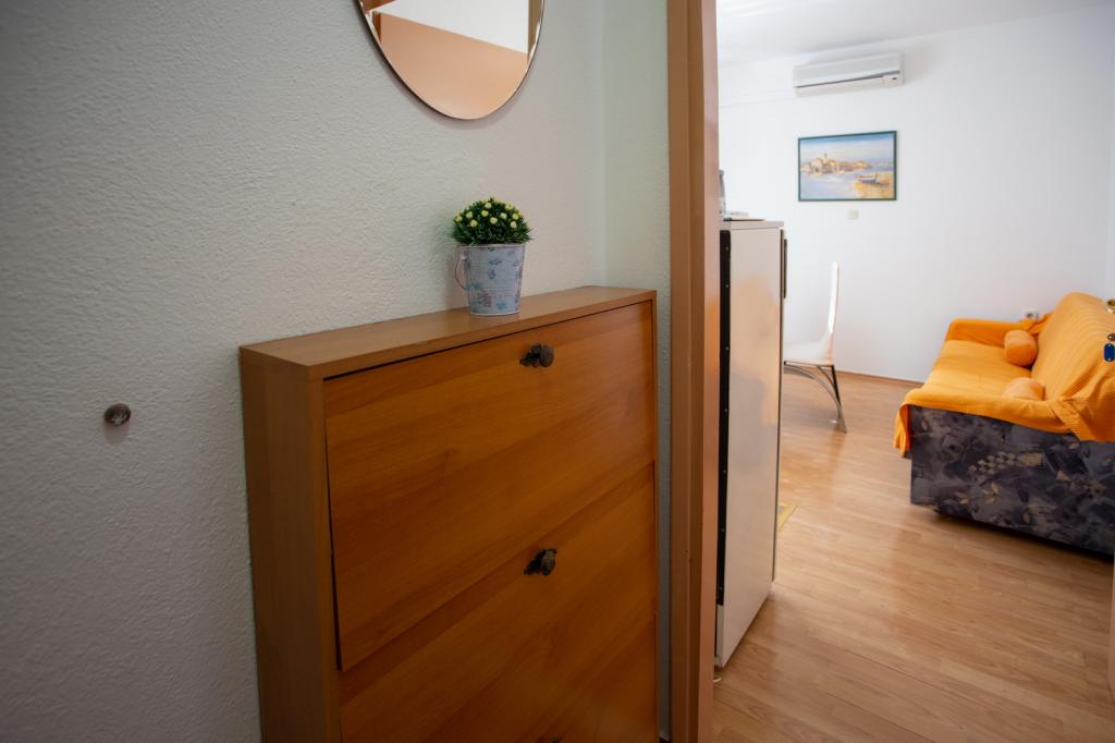 L'appartement est situé à Baska Voda Split-Dalmatie. Loin du centre et 200m de la plage, entouré par le côté sud de longues plages de sable et la pente de la montagne du Nord. L'appartement dispose d'une cuisine, une chambre avec salle de bains et balcon. Comprend WiFi, TV, climatisation et dispose d'une place de parking.