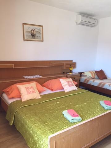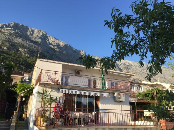 Maison Mate est situé dans un quartier calme de Baska Voda entourée de végétation méditerranéenne. Situé dans un quartier calme de Baska Voda à 100 m du centre et de la belle maison de plage de sable contient 2 appartements au premier étage. Chaque appartement dispose de deux chambres avec lit double (double), salle de bains, cuisine, salle à manger, TV, climatisation, terrasse avec vue sur la mer. Un parking privé est en face de la maison. Mot de bienvenue et un agréable séjour à Baska Voda.
