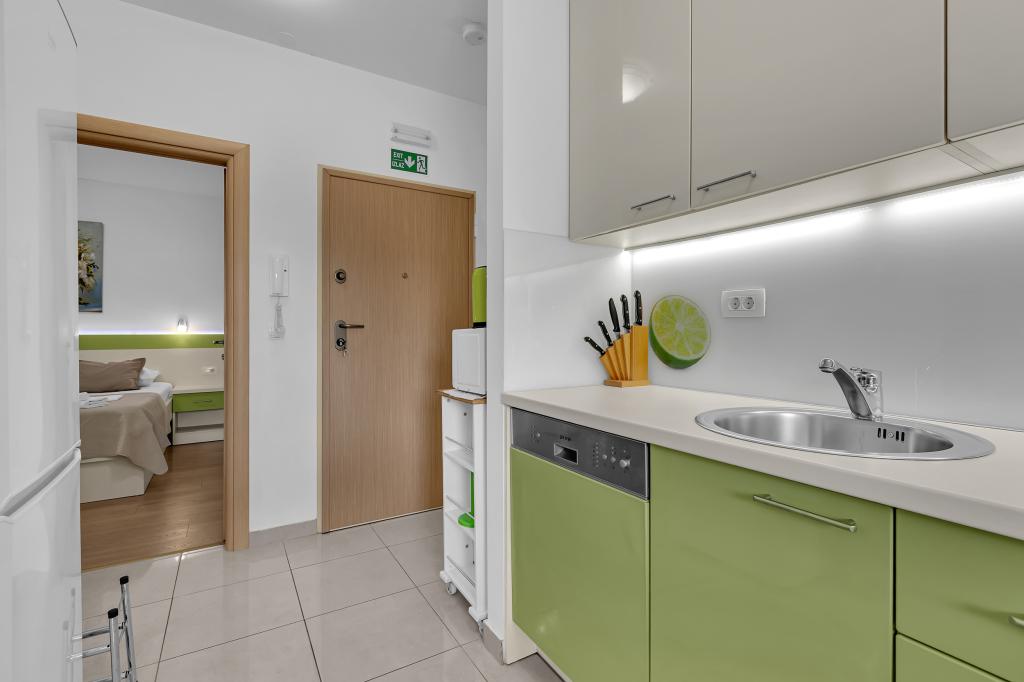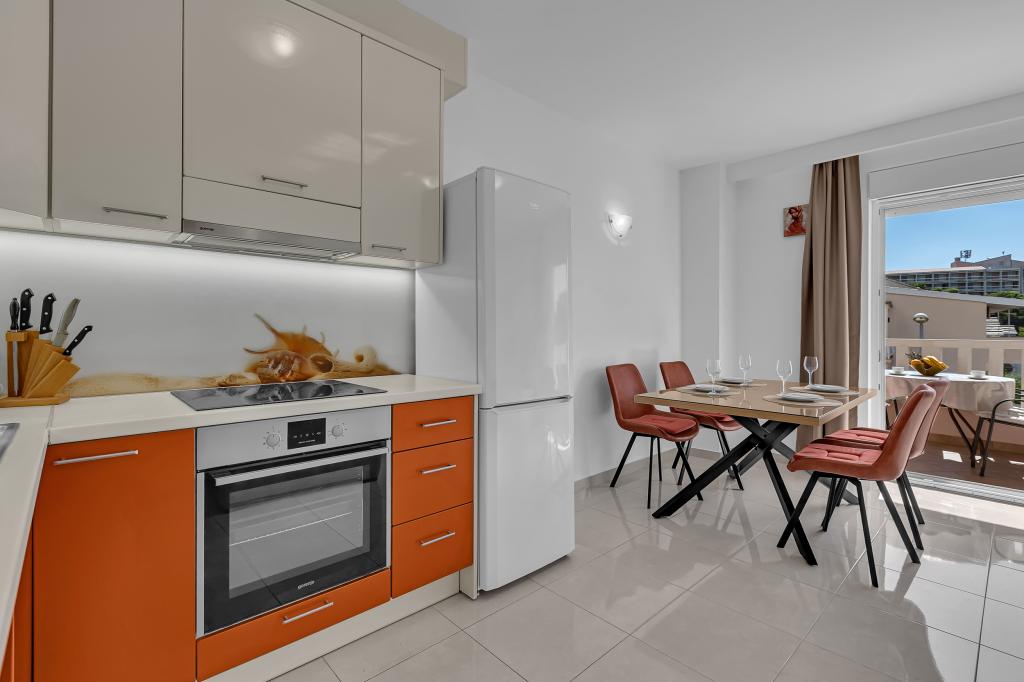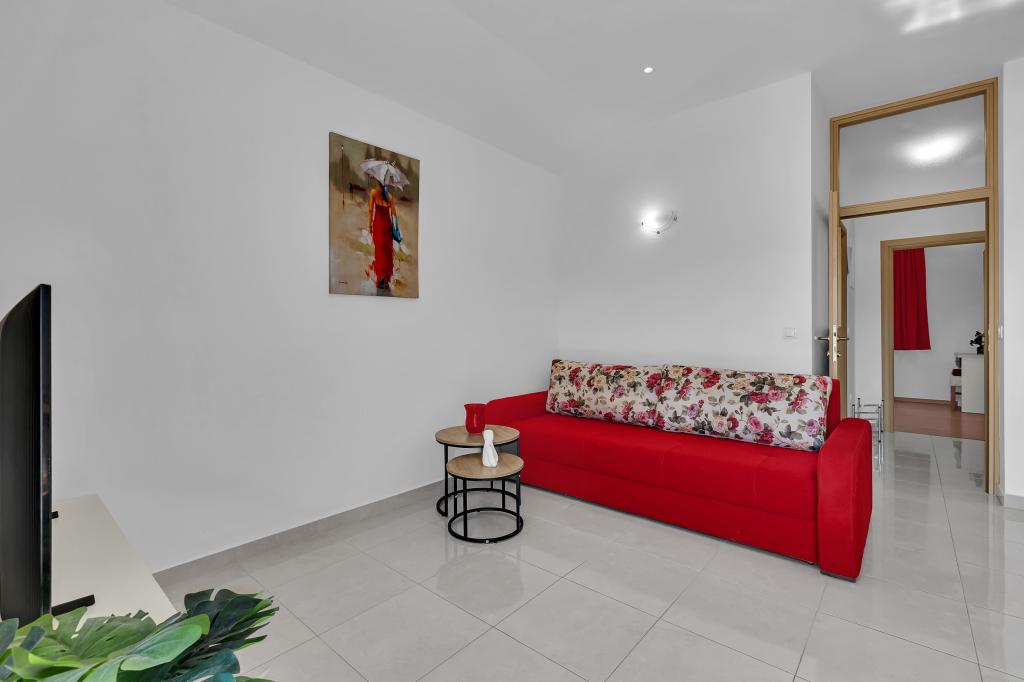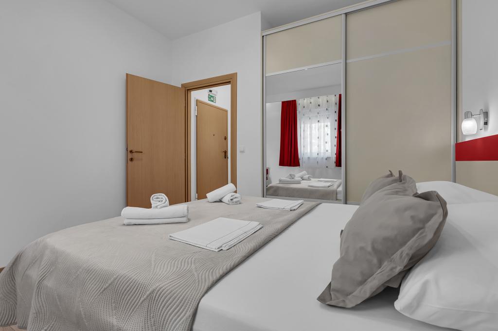 NOUVEAUX APPARTEMENTS! Tous nos appartements sont équipés de façon moderne. Au total, nous avons six (6) appartements à offrir, dont cinq (5) d'une chambre et un duplex de deux chambres. Dans la cour il y a une petite piscine pour les invités, a) Les appartements d'une pièce (2 adultes et 2 enfants) disposent : d'une chambre avec un lit double, d'une grande salle de bain avec une grande douche, d'une cuisine moderne entièrement équipée avec une salle à manger et un salon avec climatisation et un canapé-lit confortable pour deux enfants adultes, ainsi que d'Internet Wi-Fi. Chacun de ces appartements dispose d'un grand balcon de 9 m2 depuis le séjour. b) L'appartement 4 de deux pièces sur deux niveaux (4 adultes et 2 enfants) dispose au premier étage d'une chambre moderne avec un lit double et une salle de bain avec douche et WC, une cuisine complète avec un coin repas et un salon qui dispose d'un canapé-lit confortable pour deux enfants adultes. On accède au deuxième étage par un escalier en colimaçon, avec une grande pièce, une salle de bain et des toilettes séparées. . Les deux étages sont climatisés.