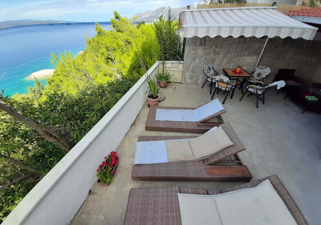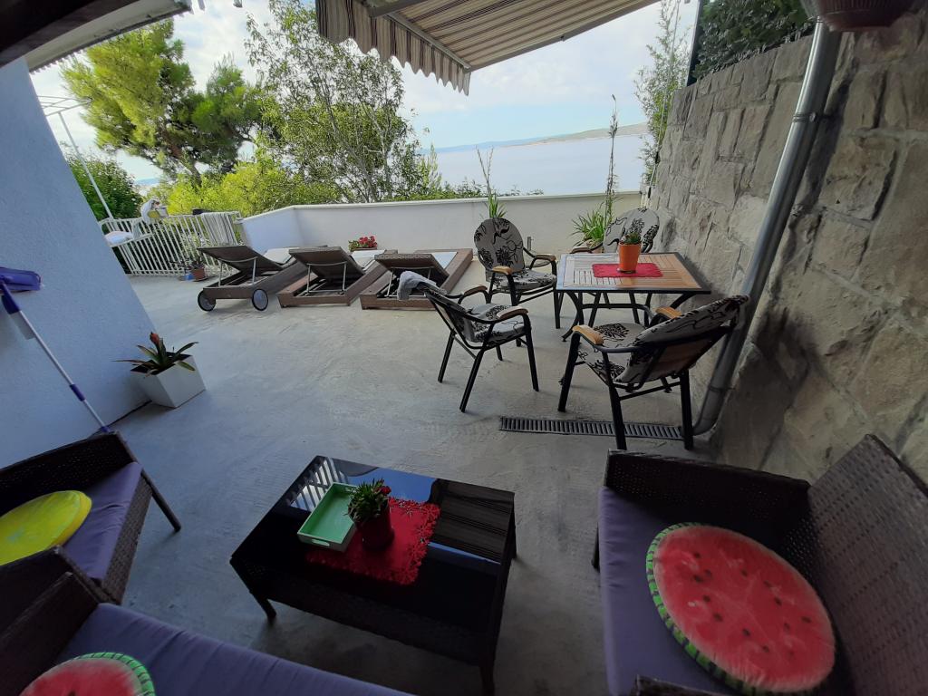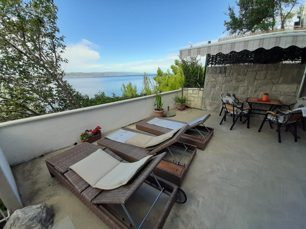 Appartement récemment rénové et entièrement équipé dans un quartier calme entre Baska Voda et Brela, situé au premier rang de la mer, au-dessus d'une belle plage. L'établissement est situé à 10 minutes à pied (environ 500 m) du centre des deux endroits. Grande terrasse avec auvent et vue sur la mer, 2 chambres doubles, deux salles de bains et cuisine avec accès à la terrasse. Tout nouveau. L'appartement est situé à un étage séparé avec une entrée séparée, un grand jardin séparé de tous les voisins. Parking privé à l'ombre juste au dessus de la maison.