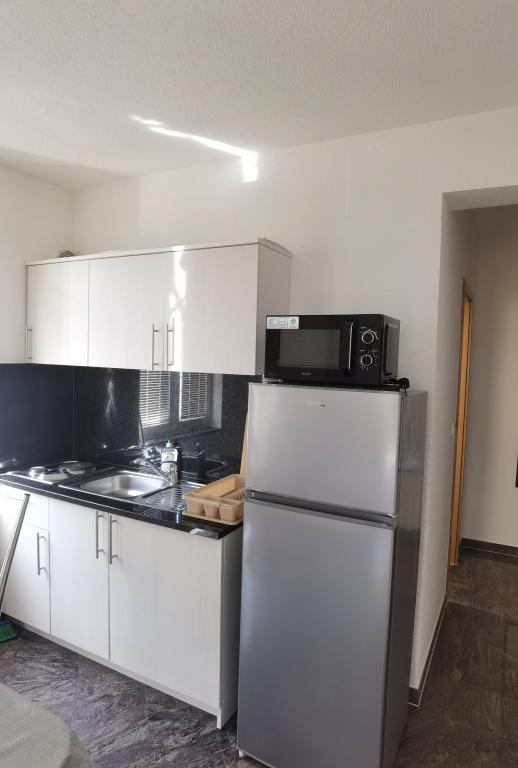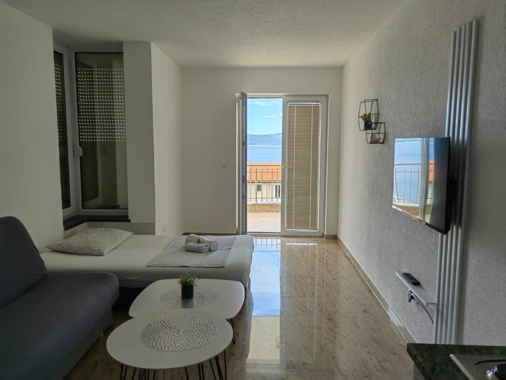 La Villa Marić est située dans un quartier calme de Baska Voda, à 200 mètres de la mer. La villa offre une belle vue sur la mer, les îles et les montagnes environnantes. Il y a des marchés, des restaurants et des cafés à proximité. Les appartements spacieux se composent d'une chambre double, d'une salle de bain, d'une cuisine, d'une salle à manger et d'un salon. Il y a un canapé-lit dans le salon. Des appartements équipés de façon moderne rendent votre séjour plus confortable : TV satellite, WiFi, climatisation et ustensiles de cuisine nécessaires, et une terrasse avec de belles vues sur la mer. Devant la villa, il y a un grand parking. Un parking dans le garage peut être fourni sur demande moyennant des frais supplémentaires. L'environnement calme autour de la maison assure la tranquillité du bruit de la rue et la sécurité des enfants. Le personnel amical est toujours à votre service. Nous vous souhaitons la bienvenue et souhaitons que vous vous sentiez comme chez vous. Nous espérons que vous apprécierez nos appartements et que vous profiterez de Baška Voda de manière inoubliable ! Nous nous réjouissons de votre arrivée !