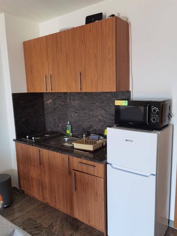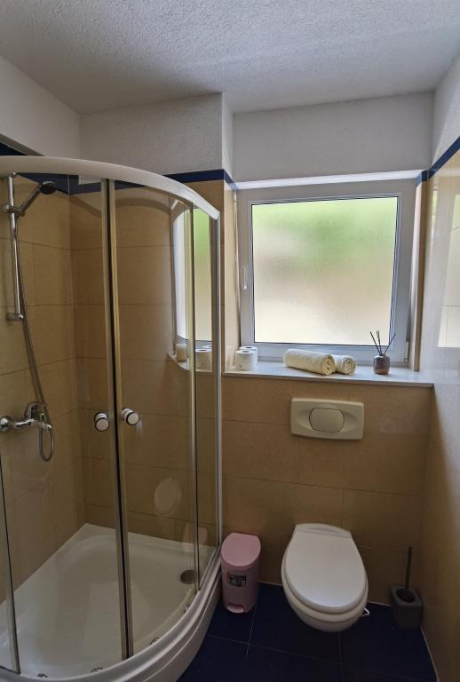 Bonjour. Je confirme les très bons avis. J'étais avec une famille de 4 personnes. Des questions banales. Le prix à proposer est très attractif. Il y a un parking sous l'hôtel. La climatisation refroidit instantanément. Il y a une kitchenette suffisante. L'ensemble de l'hôtel est propre et rénové, bordé de granit. Tout fonctionne comme il se doit. Grand balcon. Il y a une buanderie - le personnel fera la lessive si vous le demandez. Les propriétaires sont gentils et sympathiques. Attractions: Belles vues la nuit et le jour - la mer d'en haut, la lune dans le ciel et dans l'eau et les montagnes à proximité. La descente vers la plage se fait directement en bas - c'est mieux que ce que montrent les cartes. C'est un bon point de départ - proche de la plage et de la route principale, quartier calme. J'ai visité Baška Voda, Omiš et Brela, mais aussi Promajna ou Makarska. Il y a là une belle région. Je recommande : Baszka Woda - une vue sur les montagnes, la mer, la plage Nicola pour les plus paresseux et la promenade, surtout le soir quand les lumières sont allumées, il y a des magasins et des bars, il y a un pub avec de la musique pour danser et un piste de danse. Je recommande une croisière Biba à ceux qui ont beaucoup d'énergie - bonne ambiance, musique, plaisir, surtout au retour - on peut rencontrer des gens très sympas. Après-midi, voyage à Omiš. Pour les plus actifs, une promenade à pied le long des plages ne suffit toujours pas aux yeux, de la plage de Nicola à la plage de La bomba. Pour ceux qui aiment le snorkeling, je recommande les plages de Brela et Podrace, la zone autour de Brela et la pierre de LaBomba, où, en plus de nager, vous pouvez également sauter dans l'eau, la gastronomie est à portée de main - il est préférable de se rendre en voiture jusqu'au privé parking. On pourrait par exemple continuer encore et encore : les charmantes plages entre Baška Vodka et Promajna. Je recommande le logement et ses environs. C'était triste de partir.