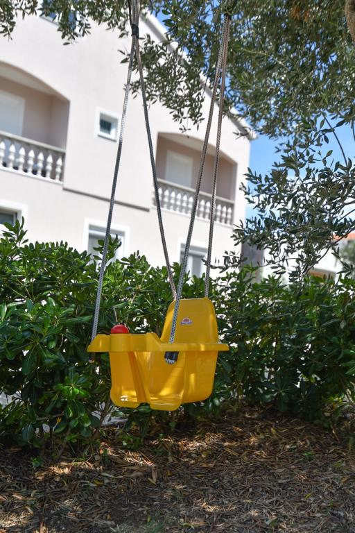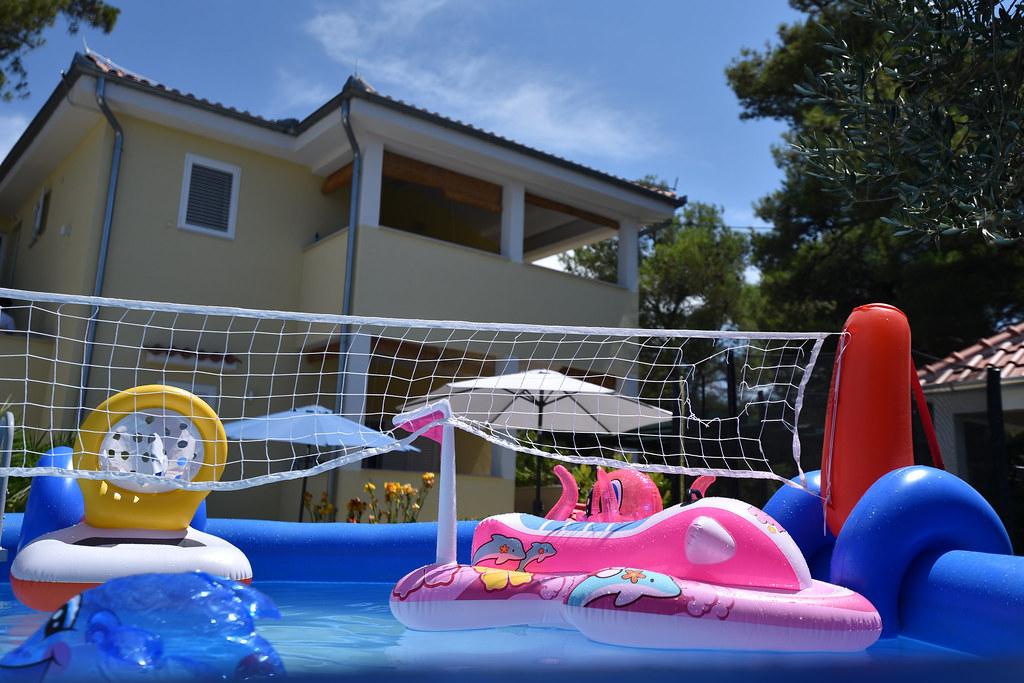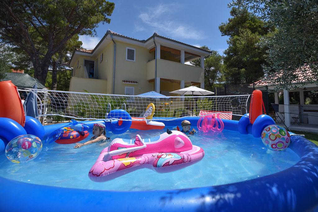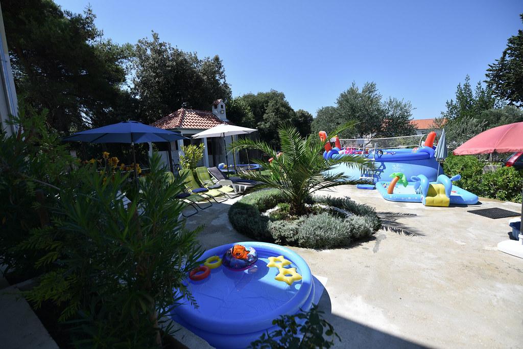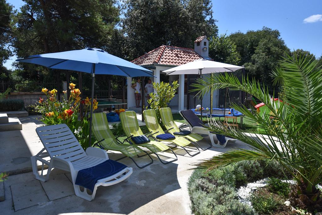 Nos hôtes sont libres d'utiliser la cour et le jardin. Vous pouvez utiliser gratuitement tout ce que vous trouvez dans la cour et le jardin. Il est partagé par tous ceux qui séjournent dans notre maison. Vous trouverez une piscine, des vélos (pour enfants et adultes, avec chaises hautes), un barbecue avec grill (sac, saće, čripnja), une machine à glaçons, une friteuse, 2 réfrigérateurs, un évier, une cuisinière électrique portable, des appareils de sport, des chaises longues avec parasols, une douche solaire, une balançoire de jardin pour 4 personnes et plusieurs piscines (de la plus petite pour bébé à la plus grande), des tables en bois et en plastique pour enfants, une maisonnette avec toboggan, échelle et balançoire, un bac à sable, des fléchettes, du tennis de table, un trampoline, du badminton, une balançoire pour enfants et de nombreux autres jouets pour enfants.