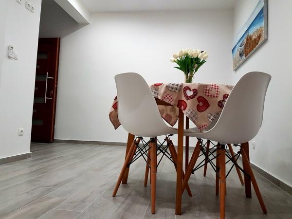 Nouveau conçu et des appartements meublés dans un quartier calme des dates, la deuxième place à la mer. Proche de la plage (10 m), des restaurants, des cafés et à 10 minutes en voiture de Zadar. Près du parc national de Paklenica (Ville), Parc national de Krka et du parc d'attractions récemment ouvert dans le port rouge.