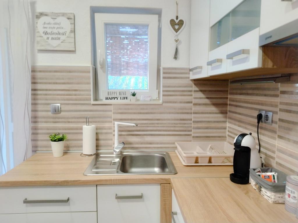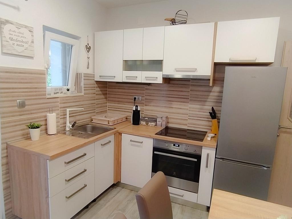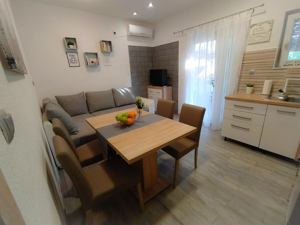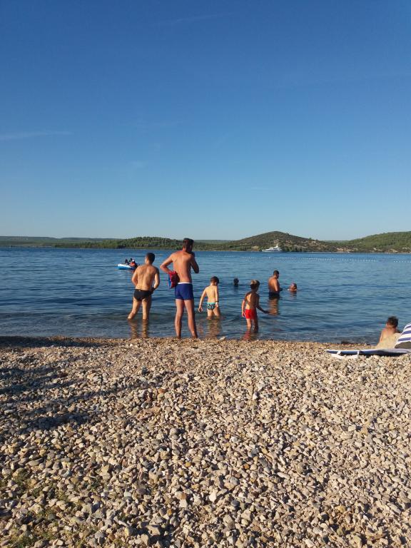 L'Apartment Baza est situé dans un village calme de Bilice, entre Šibenik et le parc national de Krka. La superficie de l'appartement est de 35 m2 et d'une terrasse de 18 m2. Il se compose de chambres avec deux lits pouvant être réunis et séparés, d'une cuisine entièrement équipée (four, congélateur, lave-linge) et d'un séjour avec deux lits. La salle de bain est spacieuse et l'utilisation gratuite du lave-linge est disponible. L'appartement dispose de la climatisation, Wi-Fi, TV (satellite, Smart TV). Si vous venez avec des enfants, nous pouvons vous offrir un lit de voyage et une mangeoire. Un parking privé, une grande cour et un barbecue sont disponibles. La cour est clôturée et assez grande pour jouer si vous venez avec des enfants plus petits. La distance de la plage et du café avec aire de jeux pour enfants est de 250 m, 5 minutes à pied. Près de l'autoroute.