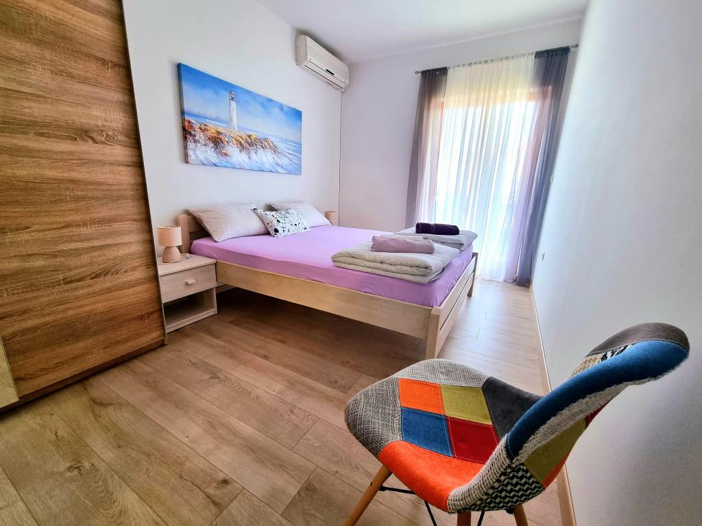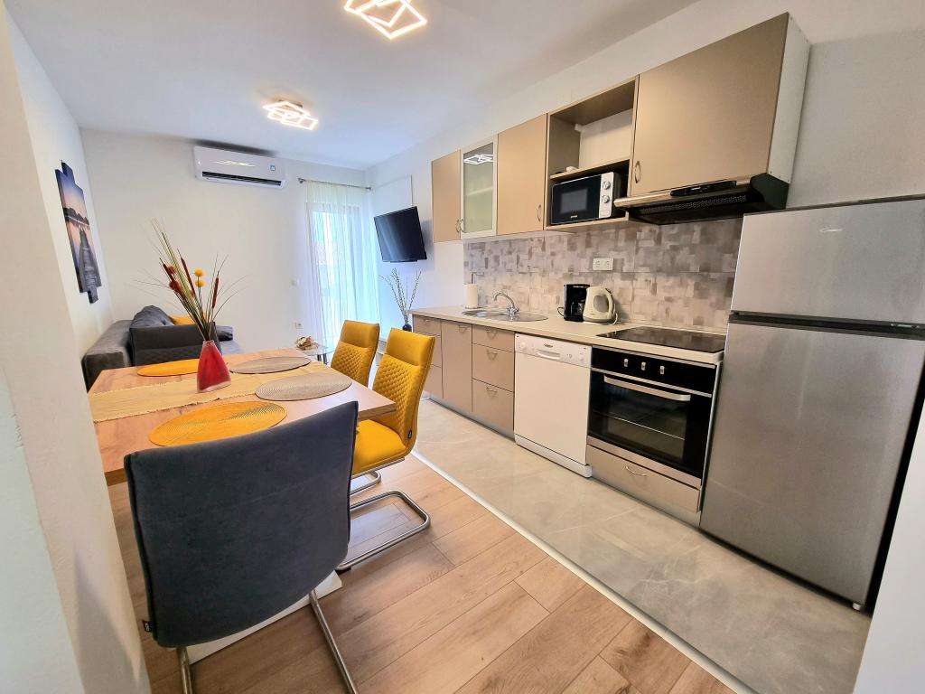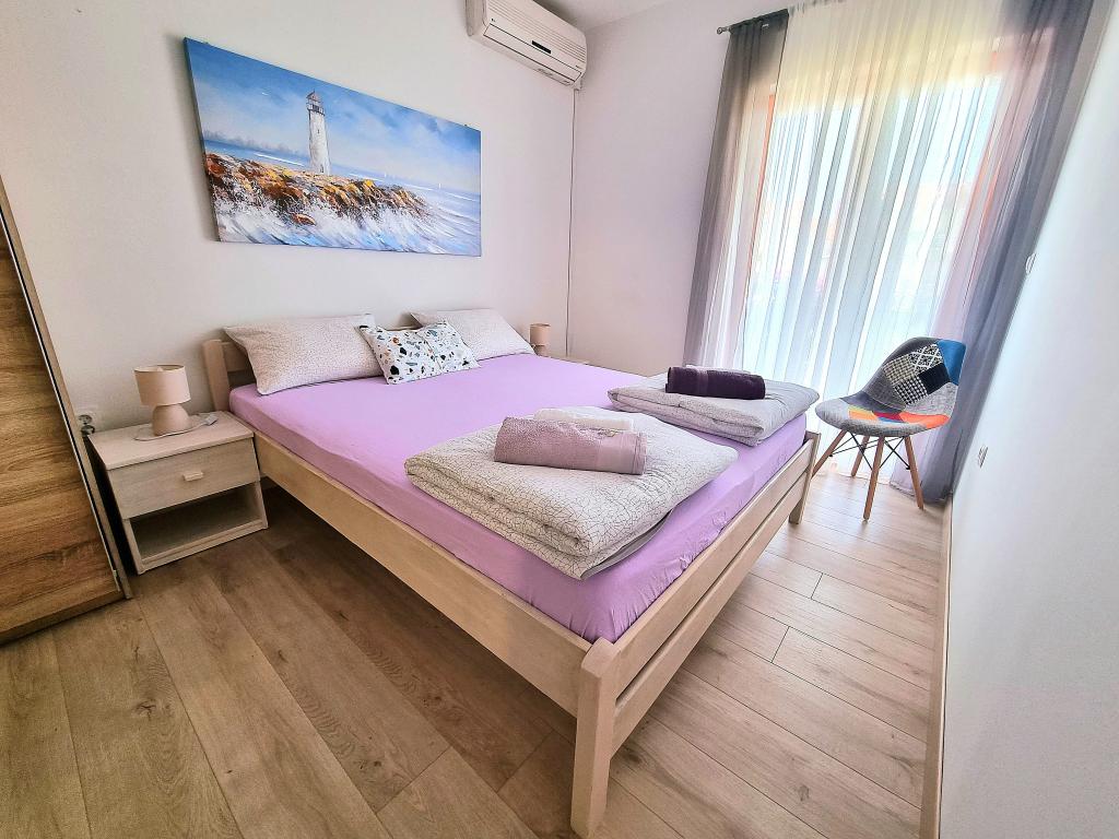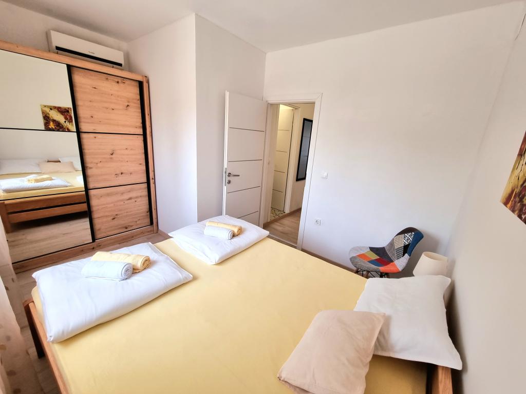 Appartement moderne et entièrement équipé de deux chambres pour 4 personnes à Biograd na Moru. Situé dans un quartier calme du centre, il se trouve à quelques minutes à pied de la plage de Dražice et à proximité immédiate de la promenade et du front de mer bordé de restaurants et de cafés. Une place de parking est disponible dans la résidence. L'appartement comprend deux chambres séparées, chacune climatisée, deux salles de bains et une cuisine entièrement équipée.