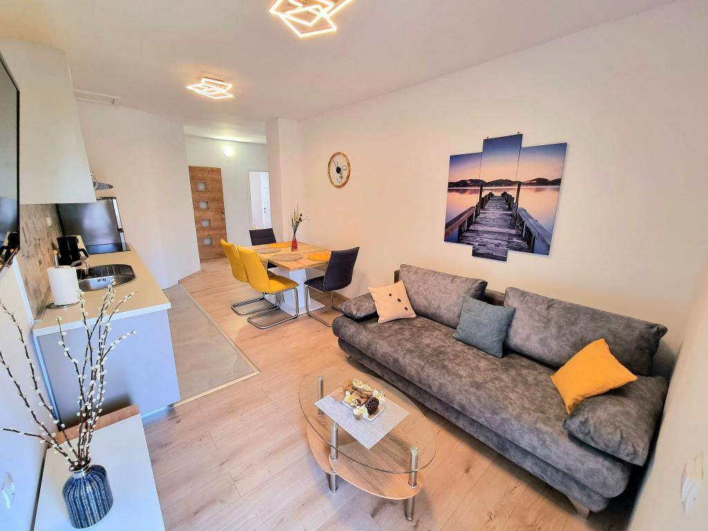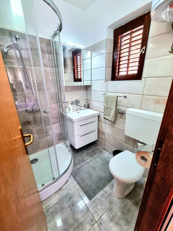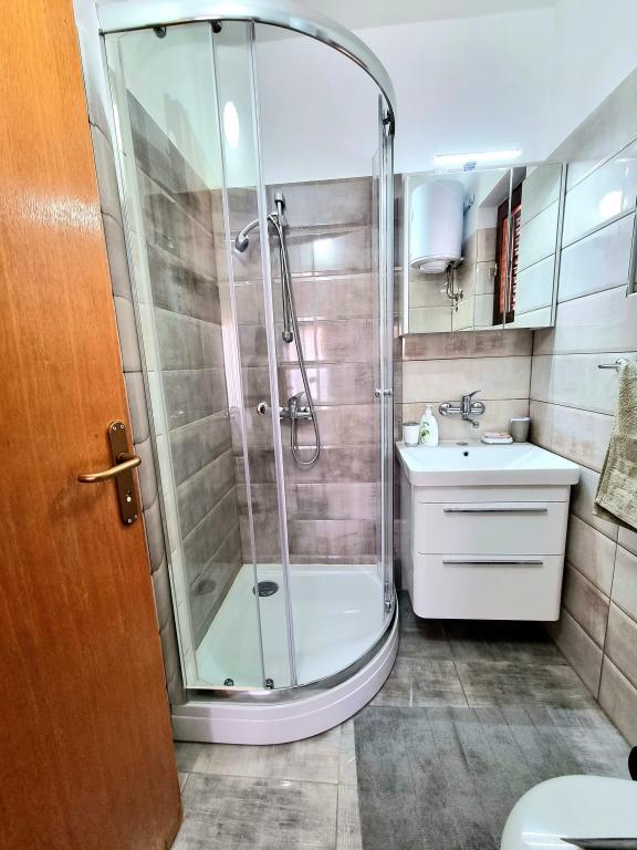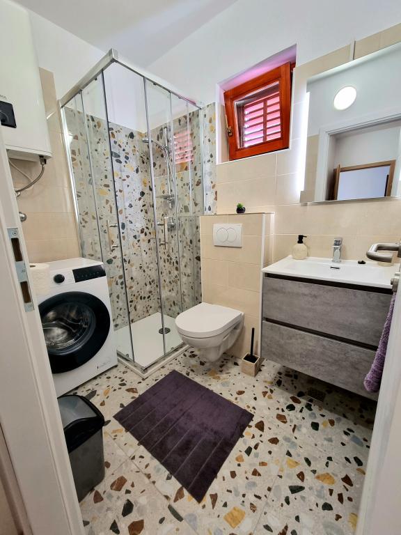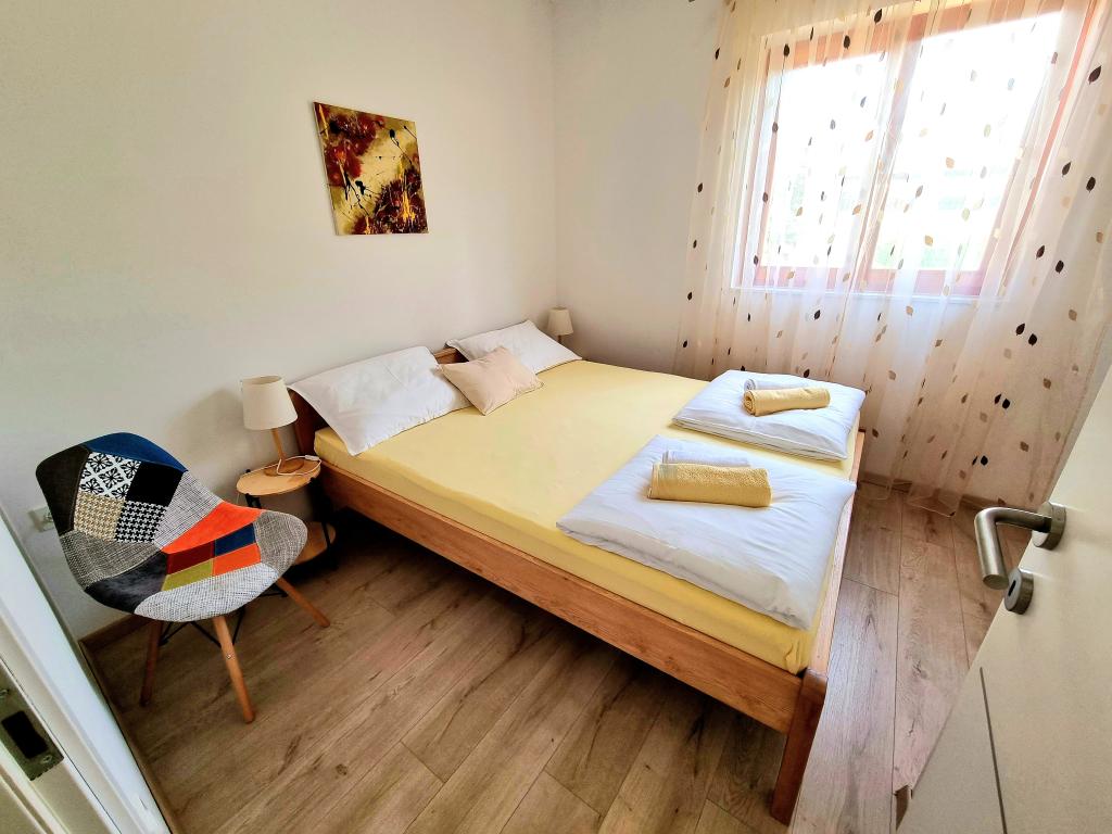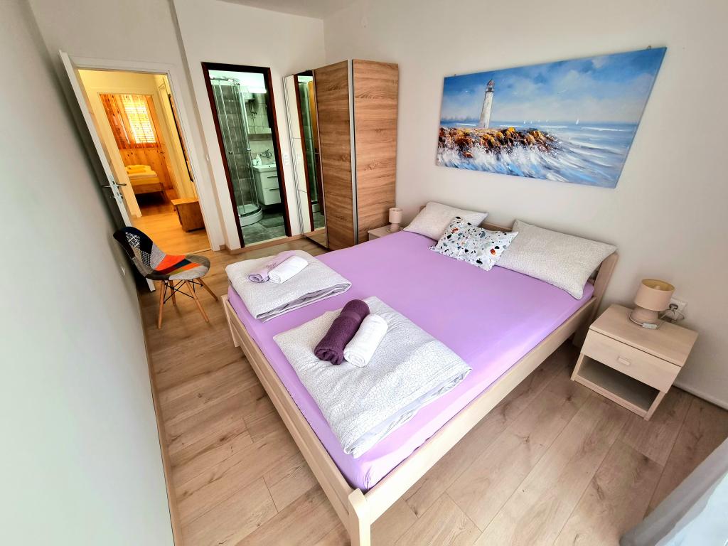 Appartement moderne et entièrement équipé de deux chambres pour 4 personnes à Biograd na Moru. Situé dans un quartier calme du centre, il se trouve à quelques minutes à pied de la plage de Dražice et à proximité immédiate de la promenade et du front de mer bordé de restaurants et de cafés. Une place de parking est disponible dans la résidence. L'appartement comprend deux chambres séparées, chacune climatisée, deux salles de bains et une cuisine entièrement équipée.