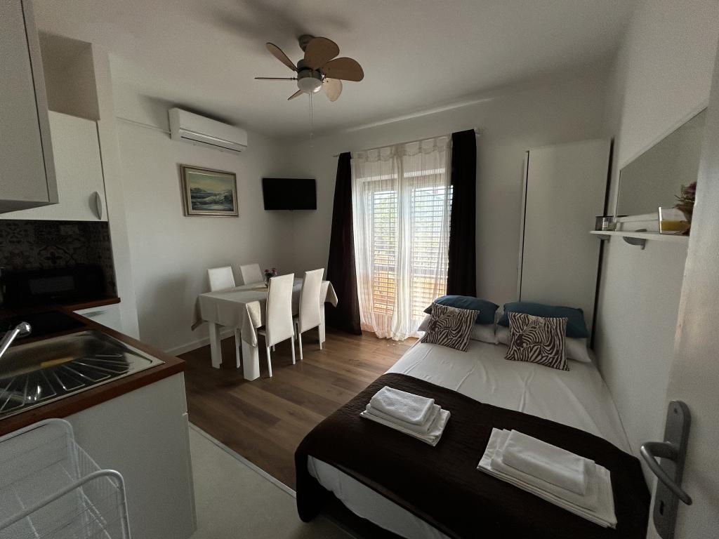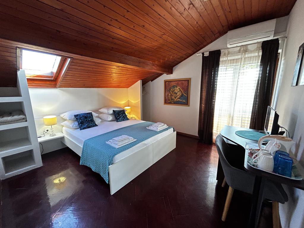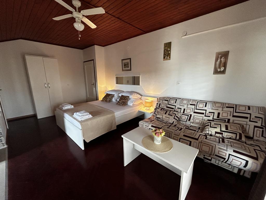 La propriété est située dans un quartier calme de Biograd, à 5 minutes à pied du centre et des belles plages (drapeau bleu). Elle est entourée d'un grand jardin plein de verdure, idéal pour les jeux d'enfants. etc.).