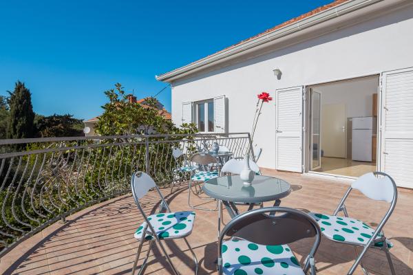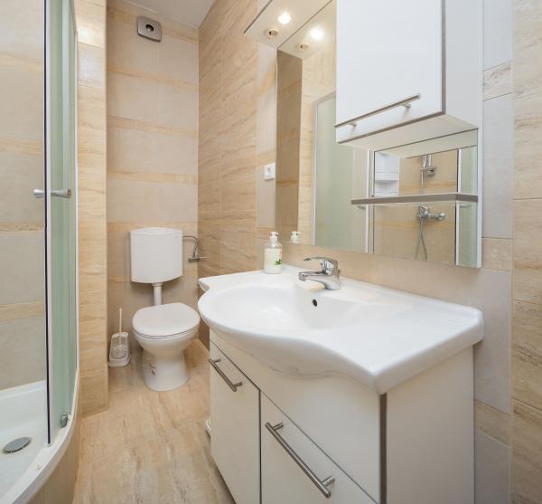 Nouvelle villa rénovée (2017). Villa se compose de 5 appartements. L'appartement dispose de deux chambres, un salon avec canapé pour 2 personnes. Chaque chambre a sa propre salle de bain. Accès gratuit à Internet, air conditionné, parking, linge de lit et les serviettes. L'appartement dispose d'une grande terrasse entourée de verdure, juste derrière le vert, il y a de belles plages, à seulement 100 mètres de l'appartement. L'appartement dispose d'un très beau jardin, plein de verdure, juste derrière le vert, il y a de belles plages. L'emplacement est un luxe discret et confortable. Restaurants, boutiques, la plage immédiatement à proximité. 80m de l'appartement, il y a une promenade, qui dispose de plusieurs installations et conduit directement au centre-ville. Plage est titulaire d'un drapeau bleu, marquant les meilleures plages du monde.