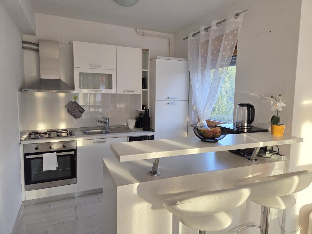Nous avons séjourné dans un appartement verdoyant pour 4 personnes. L'appartement est agréable, moderne, très bien situé, mais pour le prix de 120 € nous nous attendions à quelque chose de plus. Il manque des petites choses qui sont importantes et qui font que les invités reviennent ou ne reviennent pas. Pour le prix indiqué, nous nous attendions à au moins un ensemble de 6 verres, 6 assiettes, cuillères et autres couverts. Comme dans d'autres appartements où nous restions dans la cuisine, il devrait y avoir de la poudre à vaisselle, un peu de sucre, du sel, éventuellement des épices, un peu d'huile, du vinaigre et d'autres nécessités juste assez pour le premier moment. Dans certains autres appartements, les clients sont accueillis avec une coupe de fruits ou une bouteille de vin. Il y a aussi un parasol sur la terrasse et des chaises confortables. La terrasse n'est donc pas utilisable. Il y a un beau canapé dans le salon, mais il est assez inconfortable tout comme le lit dans la chambre des enfants. La télévision n'a que quelques programmes de télévision de base. Dans l'ensemble, un bel appartement, un hôte gentil, mais il n'y a pas de service supplémentaire qui justifierait un prix aussi élevé.