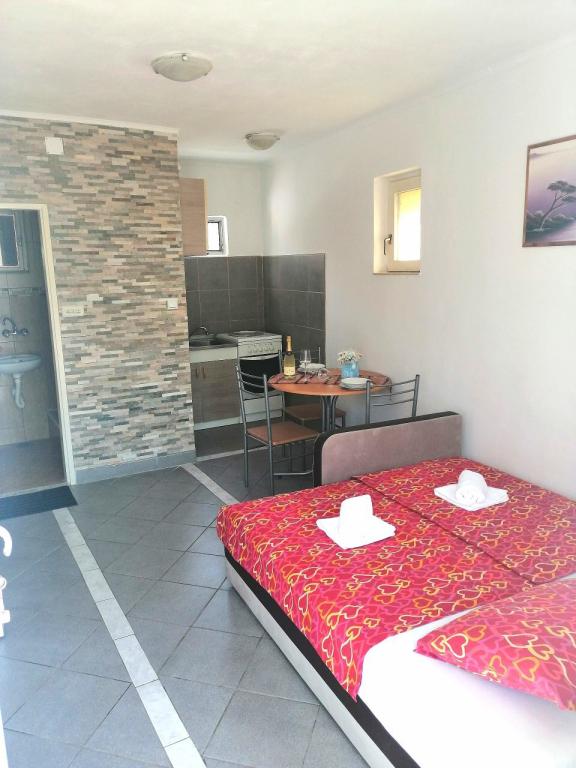 Appartement avec trois chambres, cuisine, toilettes et couloir, situé dans un quartier calme de la ville au-dessus de la principale plage de sable de Soline à 10 minutes à pied. L'appartement est au rez-de-chaussée avec une grande cour idéale pour les enfants et un barbecue pour les adultes. Un parking gratuit est disponible juste en face de l'appartement. Un endroit idéal pour se détendre.