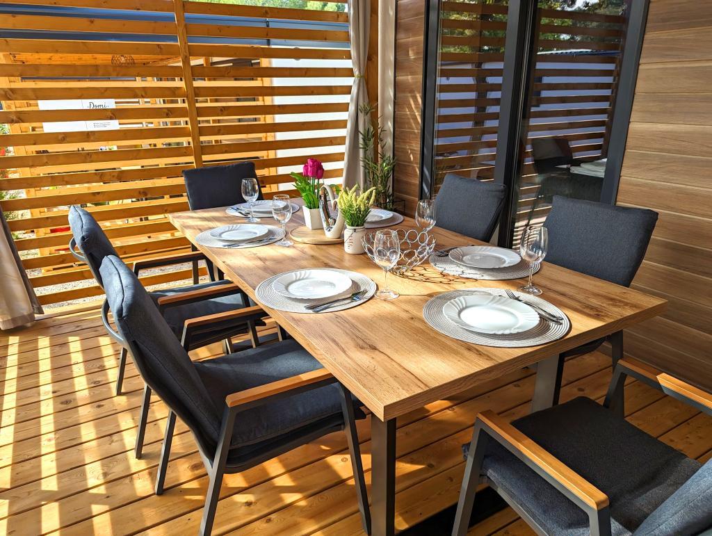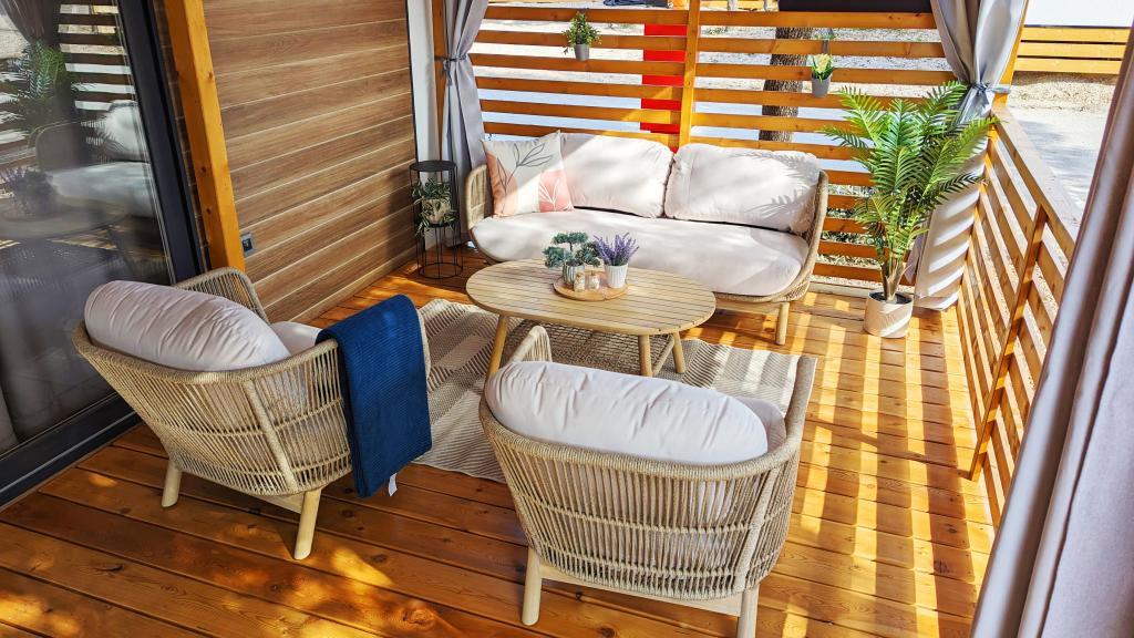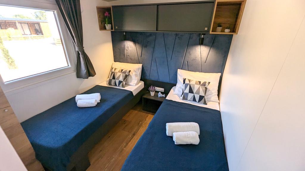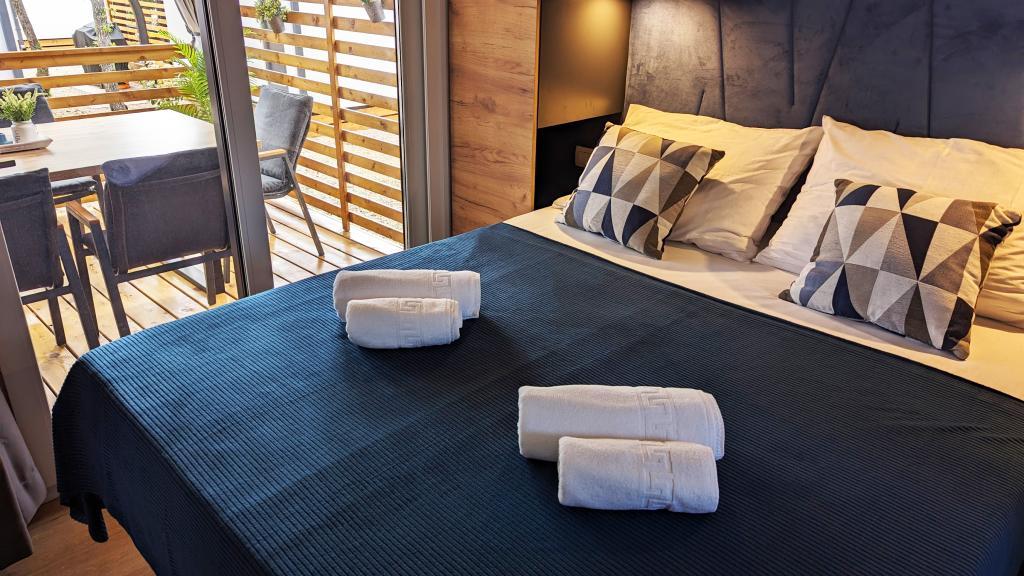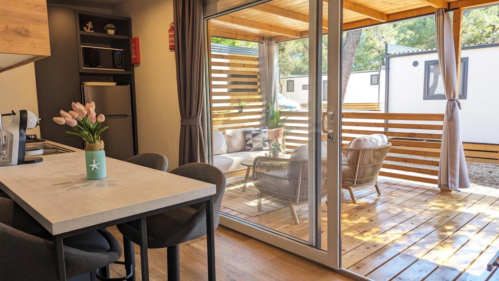 Profitez de la nature et du confort : les mobil-homes Jaki du camping Soline, à Biograd na Moru. Situés dans un coin tranquille de ce camping 4 étoiles, entourés de pinèdes, nos mobil-homes modernes sont parfaits pour accueillir jusqu'à 6 personnes. Appréciez la proximité de la plage (2 à 5 minutes à pied), des commerces et restaurants, et de la promenade menant au centre-ville (15 minutes). Ces mobil-homes offrent 2 chambres et 2 salles de bains, un salon, une grande terrasse avec table à manger et coin détente, ainsi qu'une cuisine entièrement équipée : lave-vaisselle, micro-ondes, cafetière, grille-pain, mixeur et barbecue. Le mobil-home comprend également le Wi-Fi gratuit, un parking gratuit juste à côté, une Smart TV, la climatisation, les serviettes et le linge de lit. Le camping propose de nombreuses activités pour toute la famille : de magnifiques plages de sable et de galets s'étendant jusqu'au centre-ville, un restaurant aux spécialités méditerranéennes, une aire de jeux pour enfants, des activités sportives et la location de vélos. Dalmaland, le plus grand parc aquatique à thème de Croatie, est à 15 minutes en voiture.
