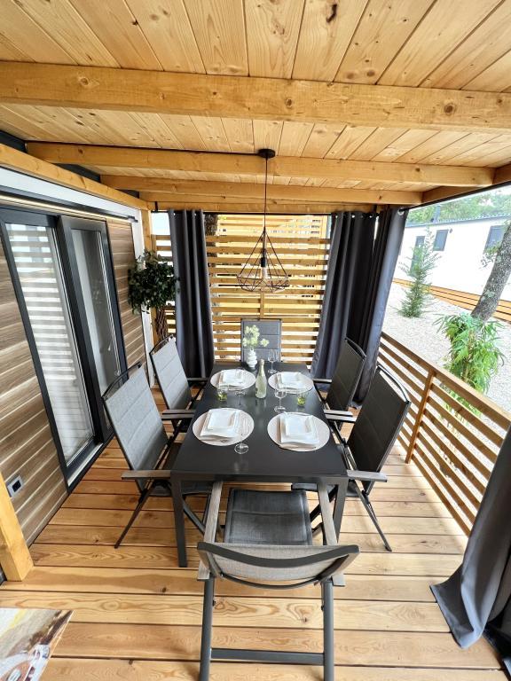 La maison comprend : 2 chambres, une cuisine entièrement équipée (avec onduleur), une salle à manger, une salle de bains, une terrasse couverte et entièrement équipée de 32 m², un lit bébé, une chaise haute bébé, un sèche-cheveux, une cafetière, une bouilloire, un barbecue, un grille-pain, un micro-ondes, un fer à repasser, des serviettes, du linge de maison, un cuiseur à œufs, un robot pâtissier et un aspirateur.