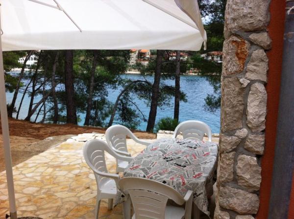 Appartement entièrement meublé dans une baie tranquille, une forêt de pins, situé à 7 mètres de la mer, la plage juste en face des appartements, un grand patio en pierre et grill. L'établissement est situé à 2 minutes à pied des commerces, des bureaux de poste et les restaurants