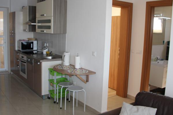 Entièrement équipée et de nouveaux appartements modernes à Brela. Les cuisines sont équipées, bouilloire, grille-pain, micro-ondes, un plat de cuisson et lave-vaisselle. La proximité de la mer. L'établissement est situé à 5 minutes des commerces, à 10 minutes de la plage, à environ 200 étapes, 20 minutes de marche le long du rivage du centre. Situé à seulement 5 kilomètres de Makarska et les grands centres commerciaux. Nous accueillons les clients avec une boisson de bienvenue inclus dans le prix, ainsi que la taxe de séjour. Si le séjour dure plus de 7 jours changeant les draps et les serviettes, et propre appartement si le client veut. frais de réservation 20% du total. Heure d'arrivée après 13 heures et départ jusqu'à 12 heures.