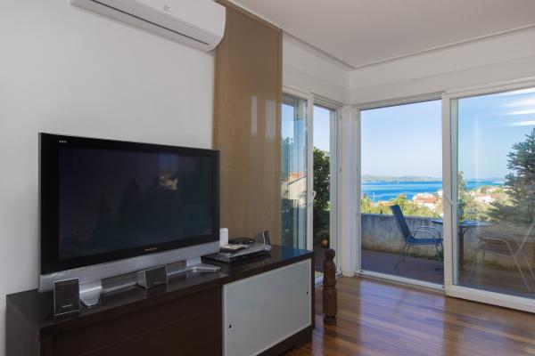 Appartement entièrement équipé, avec une vue magnifique de l'appartement et des terrasses sur la place et les îles. Dans un quartier calme de la ville, avec possibilité de parking dans la cour. 5 minutes à pied de la place et de la plage, du port de Krapanj, de la gare routière de Sibenik. Le parc aquatique de 4 km - station Solaris, la vieille et irrésistible ville de Sibenik, à seulement 7, 3 km. À proximité du parc national de Krka et du parc national de Kornati. De nombreux restaurants de grande qualité proposant une cuisine et une ambiance faites maison. Et plus que vous pouvez découvrir vous-même et nous sommes sûrs de reposer votre âme et votre corps. bienvenue