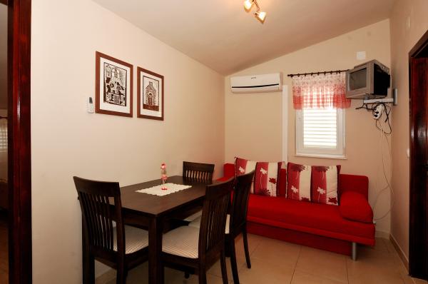 Pleasant, appartements récemment rénovés sont situés au début de Brodarica, à quelques minutes à pied de la plage de Brodarica. Non loin de l'appartement il ya le parc national de Krka et l'île de Krapanj, l'île la plus basse dans la Méditerranée avec une longue spužarstva de l'histoire. Les studios se composent d'une salle où il ya une cuisine, deux lits, une salle de bains, un balcon (tous sauf A5). Les appartements sont adaptés pour 4 personnes composée de 2 chambres, salle de bains, cuisine-salle de séjour avec canapé-lit, balcon. Les appartements sont adaptés pour 2-4 personnes, composé d'une cuisine-salon avec canapé-lit, chambre double, salle de bains, balcon (tous sauf A8). Tous les appartements sont climatisés. Les clients ont accès à la télévision, par satellite, et la plupart des unités disposent d'un balcon avec vue sur la mer. Vous pourrez utiliser le barbecue et un espace de stationnement.