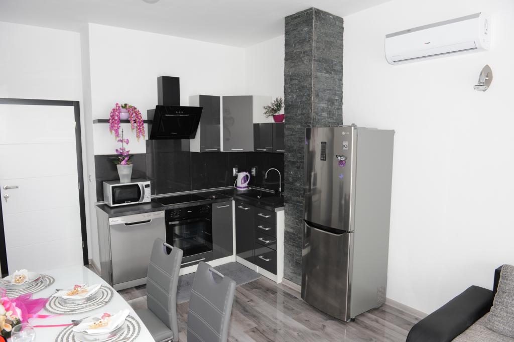 Appartements entièrement équipés et modernes situés à Brodarica, à environ 3 km du centre de Sibenik. Studio mis en service en 2017, appartements d'une pièce et de deux chambres placés en fonction en 2019. Gradska Šibenska plaža La gravure sur bois se trouve à environ 30 mètres de l'appartement. Un pâté de maisons se trouve à 20 mètres d'un magasin, plusieurs bars de plage, une restauration rapide, une pâtisserie, des boulangeries, des terrains de basket-ball et de volley-ball, des aires de jeux pour enfants, du matériel de sport. Dans les 3 miles, il y a un centre commercial Dalmare, Kaufland, Plodine, Lidl, Mc Donalds. .