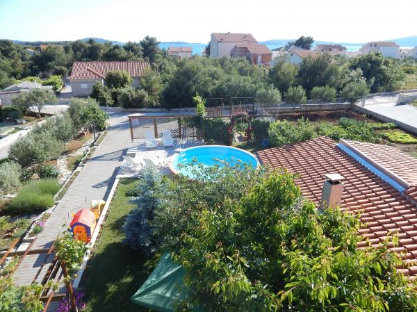 Entièrement équipées et des appartements modernes dans une maison de famille dans laquelle vivent et accueille, dans une partie calme de Brodarica, à 300 m de la plage (gravier), Magasins 200 m, restaurant 300 m; Parking en face de la maison, sur le terrain; Partage jardin avec travnjankom, piscine ronde (diamètre de 5 m, profondeur 120 cm), chaises longues, barbecue, mobilier de jardin. Climatisation supplément de 5 euros par jour. Internet sans fil (wi-salut).