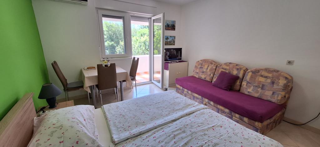 Au premier étage de la résidence, un balcon avec vue sur la forêt et la verdure. Paisible et confortable pour dormir. A proximité se trouvent un court de tennis, un terrain de basket, des pistes cyclables, des promenades et la plus belle et la plus grande oliveraie de Croatie. Une station familiale préférée des amoureux de la nature également. Plages naturelles, port de plaisance, grillades, restaurants, commerces, boulangerie, pâtisserie et bureau de poste sont disponibles à proximité immédiate de l'appartement.