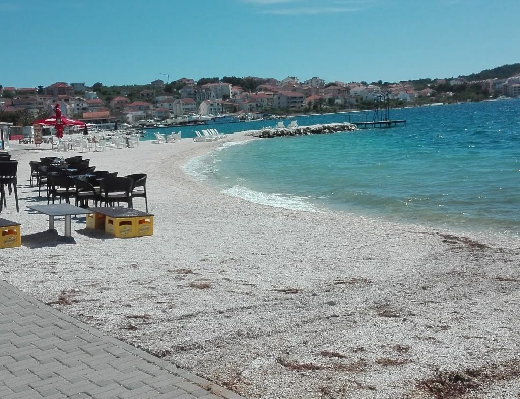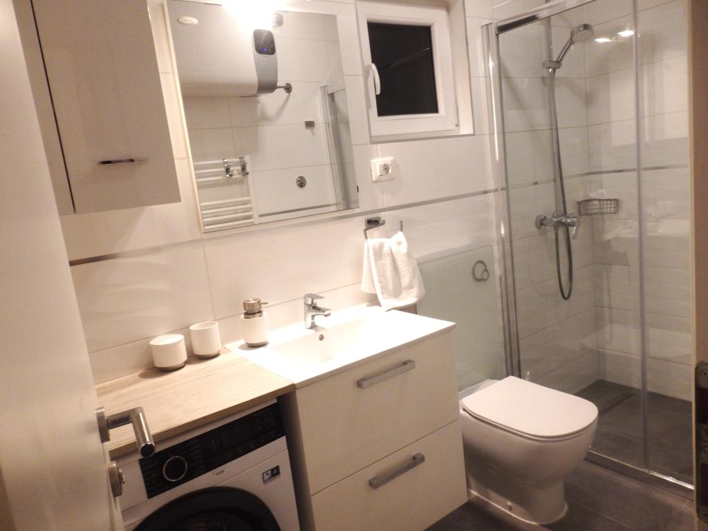 Appartement moderne et entièrement équipé avec vue mer, grande terrasse et jardin, à proximité de la plage, 4 étoiles. Situé dans une maison (rez-de-chaussée et premier étage), l'appartement comprend au rez-de-chaussée : une entrée, une cuisine, un salon et une salle de bains. Le salon est équipé d'un canapé-lit pour deux personnes. Au premier étage : une chambre, une salle de bains (avec douche et WC séparés) et un balcon couvert de 10 m² avec vue mer. La chambre dispose d'un lit double confortable et d'un fauteuil convertible en lit bébé. La cuisine, au rez-de-chaussée, donne sur une terrasse de 45 m². Un barbecue et une table à manger sont installés dans la partie couverte (15 m²), tandis que le reste de la terrasse est aménagé en espace détente avec vue sur le jardin.