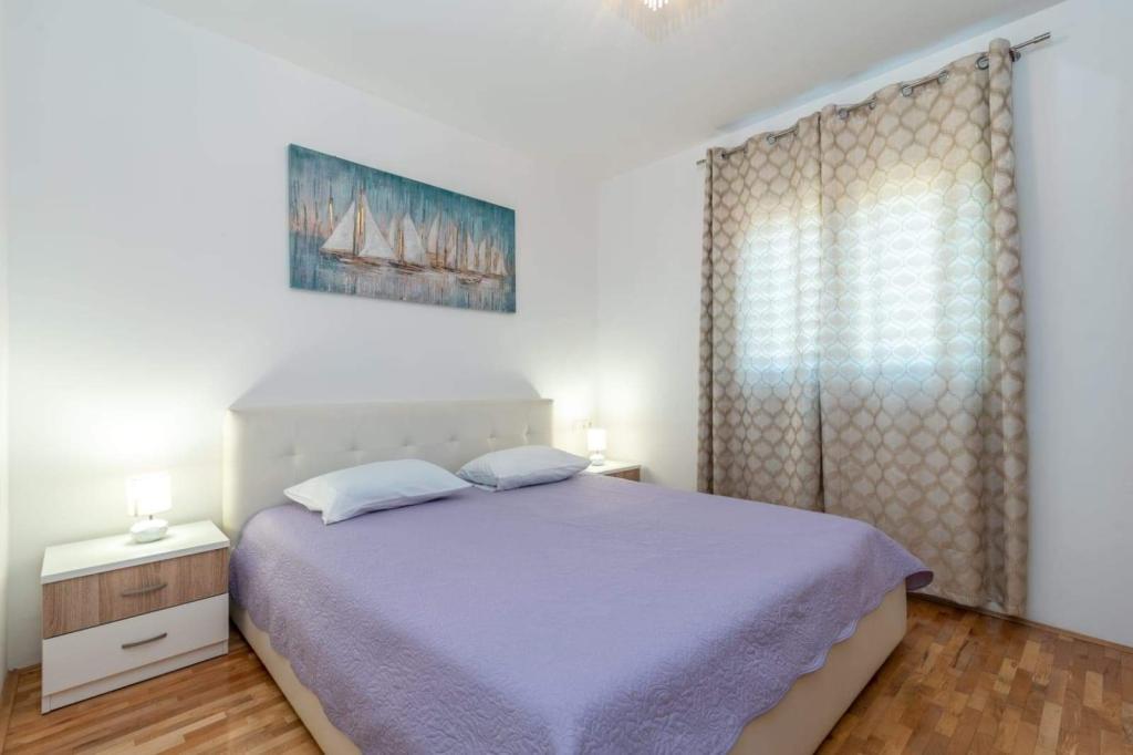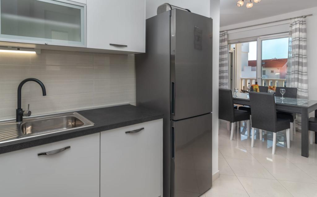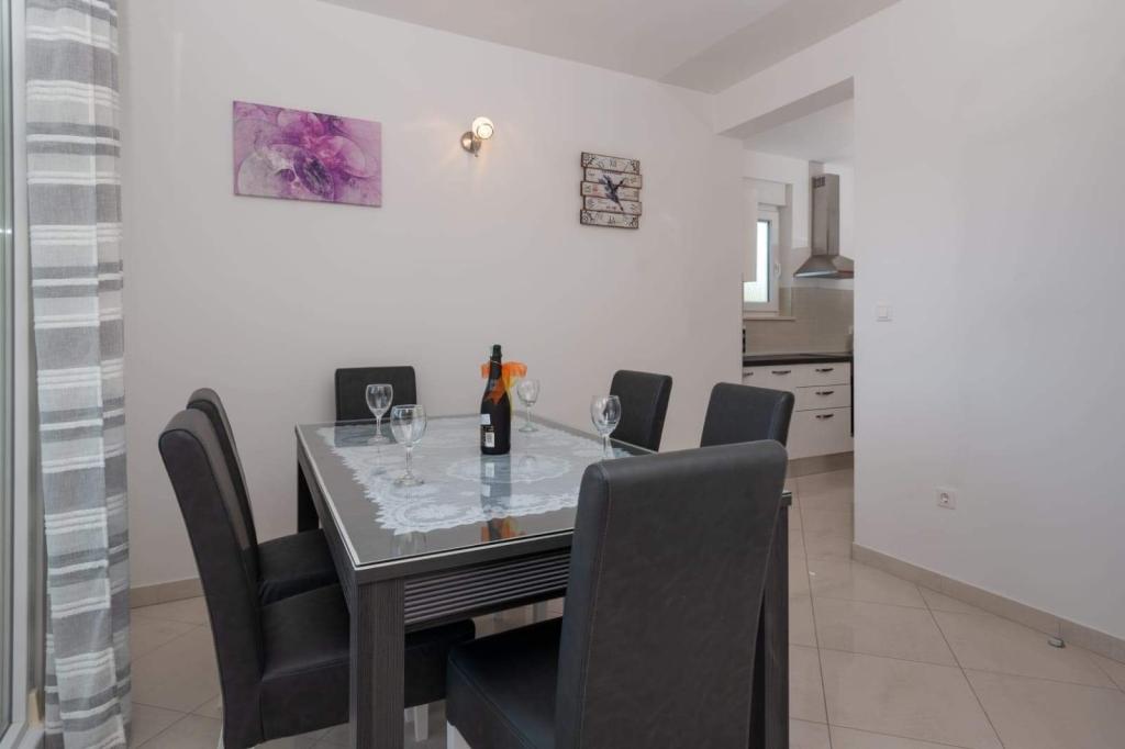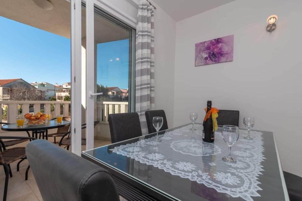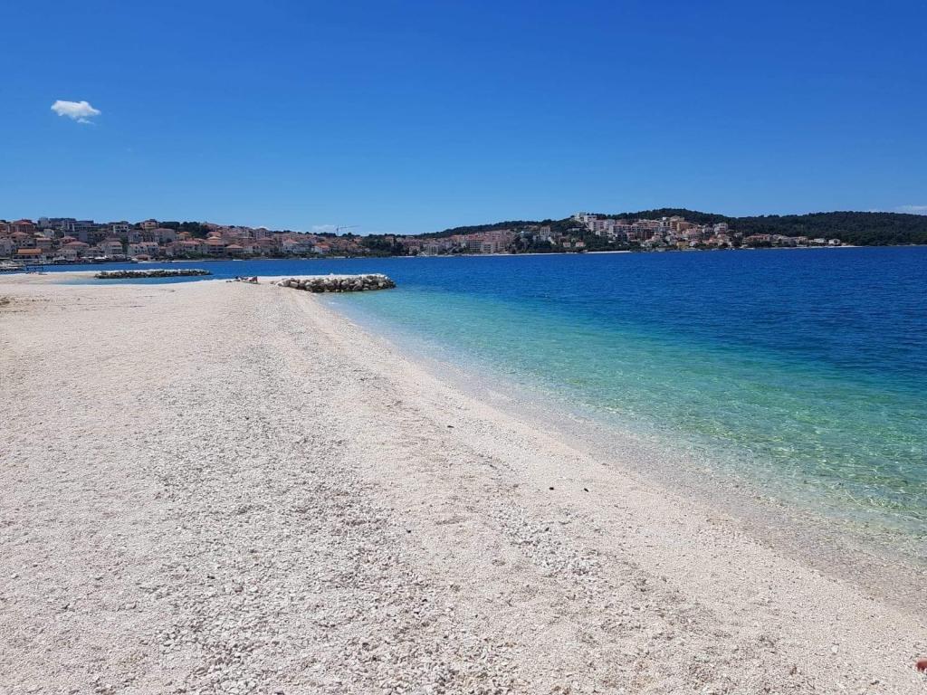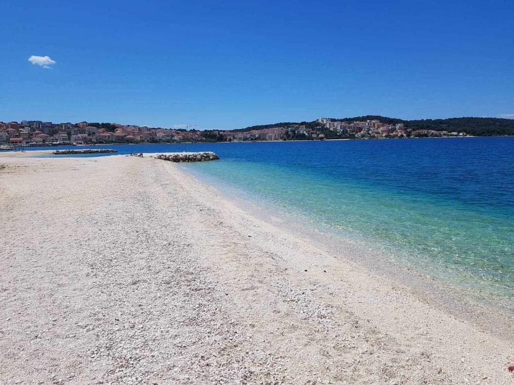 L'appartement est situé sur l'île de Čiovo, dans une baie paisible du district de Rastići, idéal pour des vacances en famille. Il se trouve à 200 m de plages rocheuses et à 400 m de plages de sable, tandis que la célèbre plage de Copacabana est à seulement 1,6 km. La ville de Trogir, classée au patrimoine mondial de l'UNESCO, est à quelques kilomètres. Situé au premier étage, l'appartement offre une superficie de 72,5 m² avec un balcon de 7 m² et peut accueillir jusqu'à 6 personnes (7 si nécessaire), avec un lit bébé. Vous profiterez de la climatisation, du Wi-Fi gratuit et d'une place de parking privée. L'appartement dispose également d'une salle de fitness et d'une salle de jeux au sous-sol, incluses dans le prix. Équipée d'appareils de musculation, d'un vélo elliptique, d'un baby-foot, de fléchettes et d'un vélo, elle est idéale pour se détendre et s'amuser en famille.