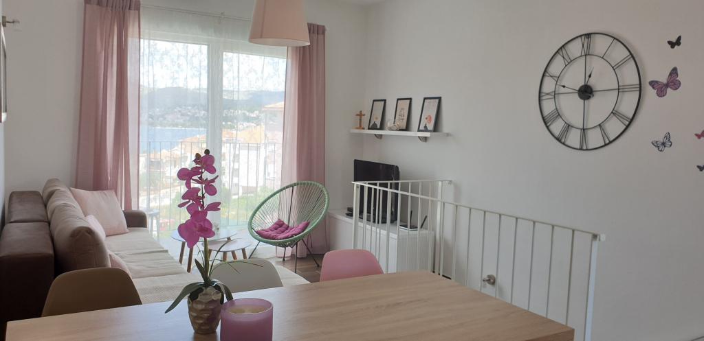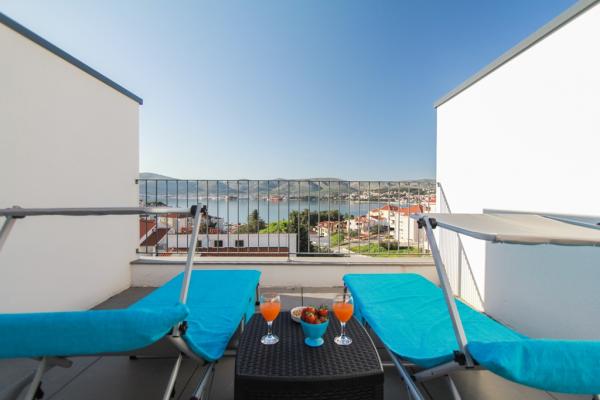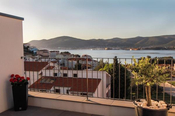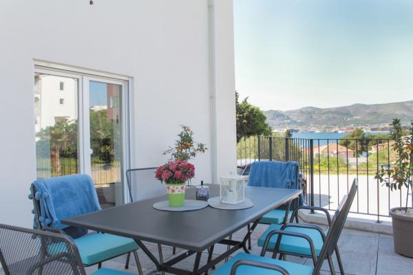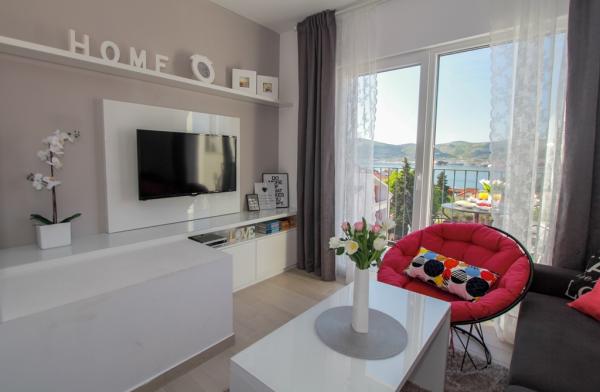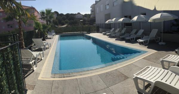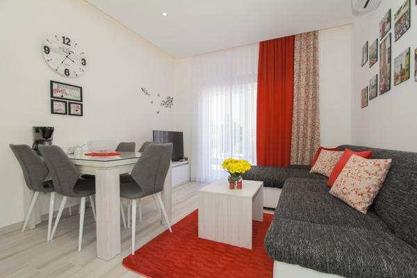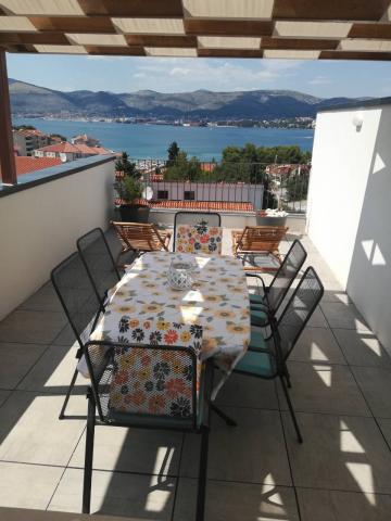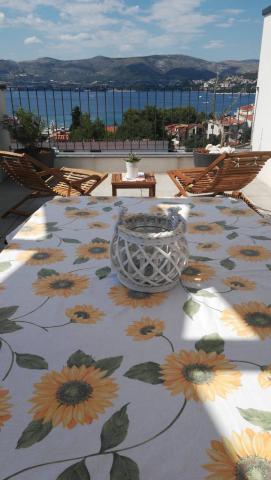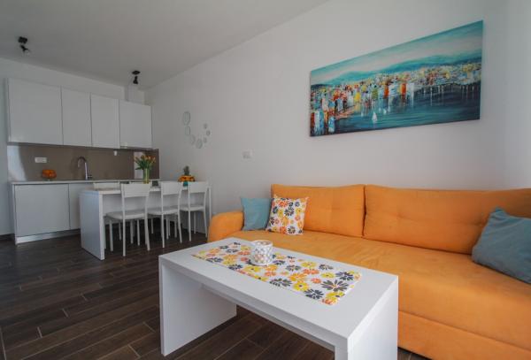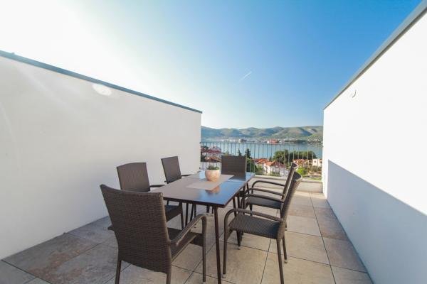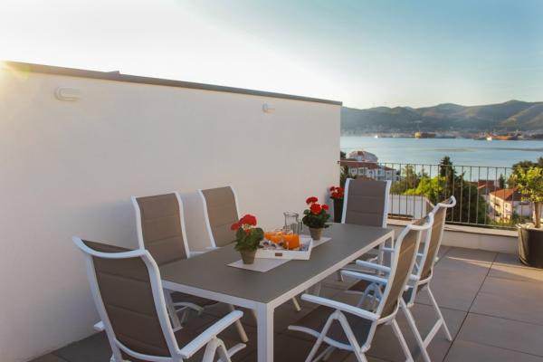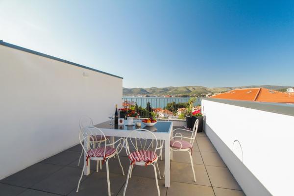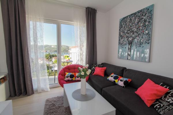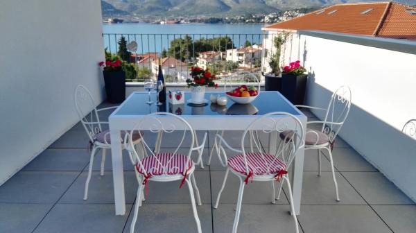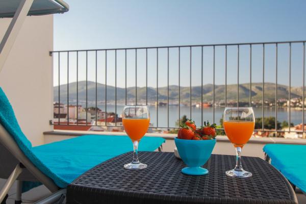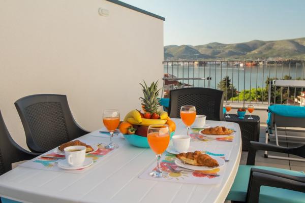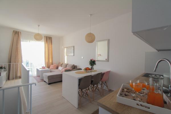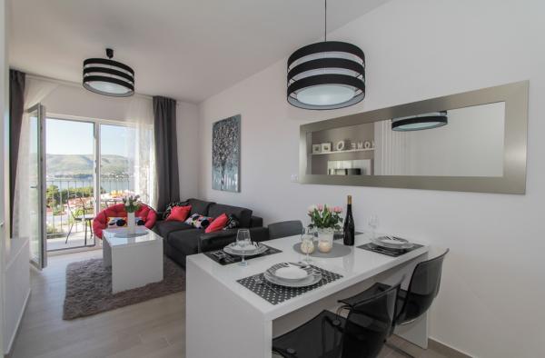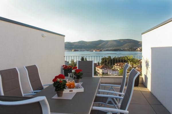 Les nouveaux appartements de deux chambres sont situés dans un quartier calme d'Okrug Gornji, à seulement 5 minutes à pied de la plage de la baie d'Okruška et à 10 minutes à pied de la plage de Tatinje. . Les appartements sont meublés de façon moderne et comprennent une cuisine entièrement équipée. Les suites sur six étages ont chacune leur propre terrasse sur le toit de 25 m2 avec une vue magnifique sur la mer. Il y a un barbecue et un ensemble de sièges. Deux appartements situés au rez-de-chaussée possèdent également une terrasse avec vue sur la mer, un barbecue et des sièges. En face de l'immeuble se trouve une piscine d'eau salée de 50 m2. En mai et octobre, l'eau de la piscine sera chauffée. Beplatan wifi. Dans la cour de l'immeuble, il y a une place de parking pour chaque appartement.