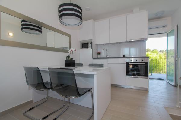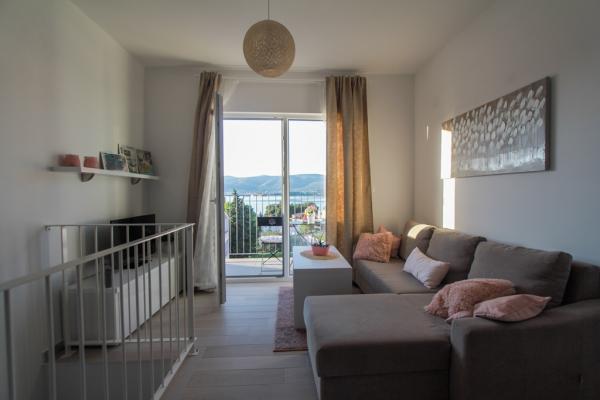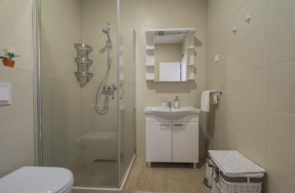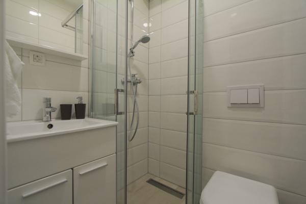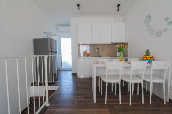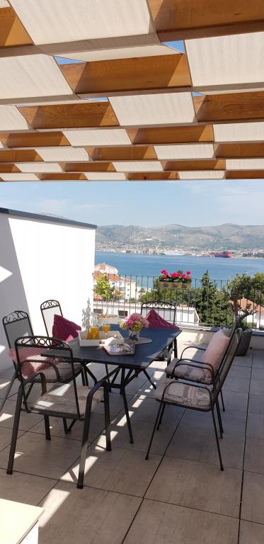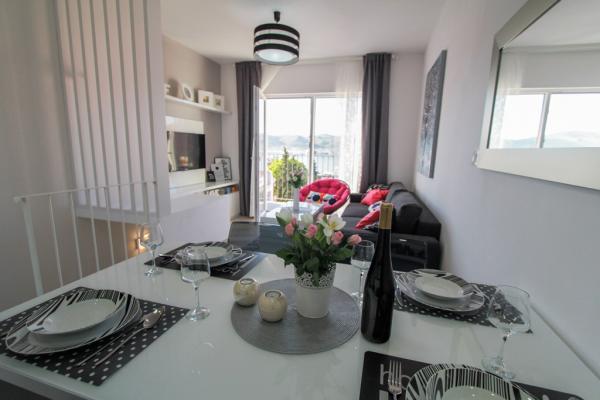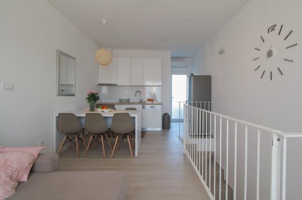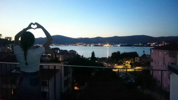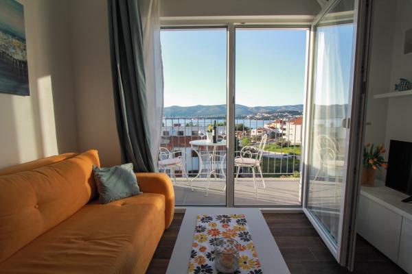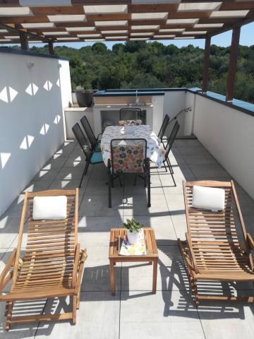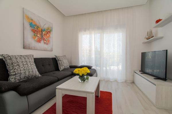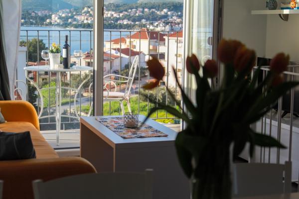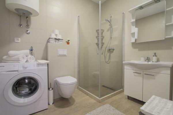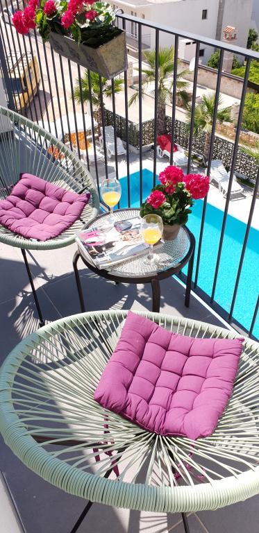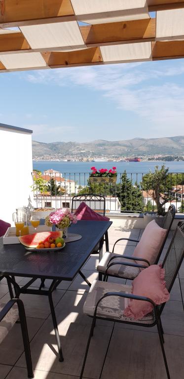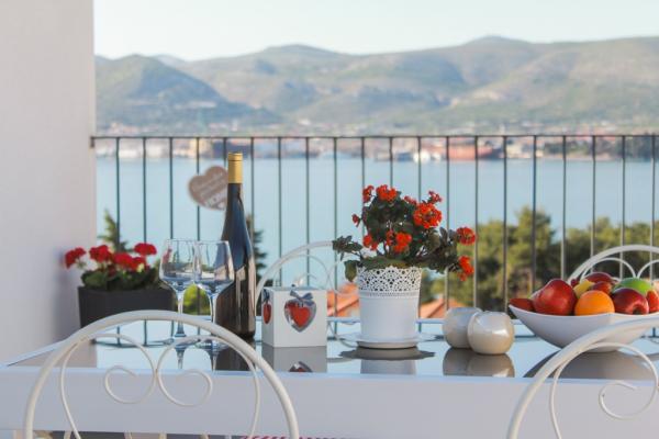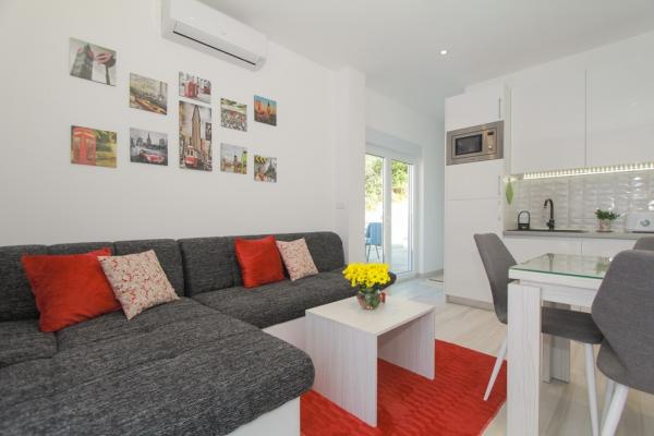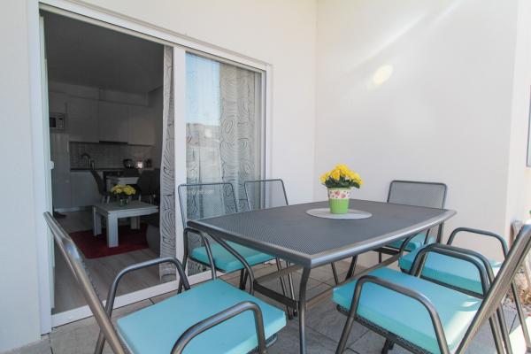 Les nouveaux appartements de deux chambres sont situés dans un quartier calme d'Okrug Gornji, à seulement 5 minutes à pied de la plage de la baie d'Okruška et à 10 minutes à pied de la plage de Tatinje. . Les appartements sont meublés de façon moderne et comprennent une cuisine entièrement équipée. Les suites sur six étages ont chacune leur propre terrasse sur le toit de 25 m2 avec une vue magnifique sur la mer. Il y a un barbecue et un ensemble de sièges. Deux appartements situés au rez-de-chaussée possèdent également une terrasse avec vue sur la mer, un barbecue et des sièges. En face de l'immeuble se trouve une piscine d'eau salée de 50 m2. En mai et octobre, l'eau de la piscine sera chauffée. Beplatan wifi. Dans la cour de l'immeuble, il y a une place de parking pour chaque appartement.