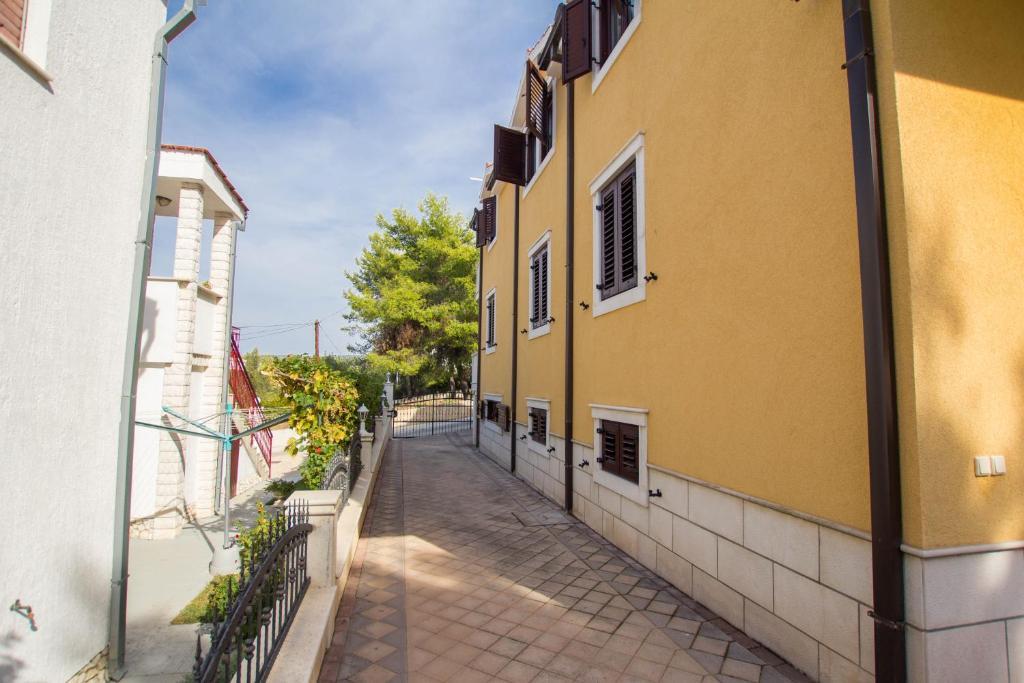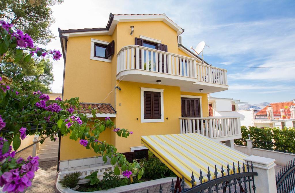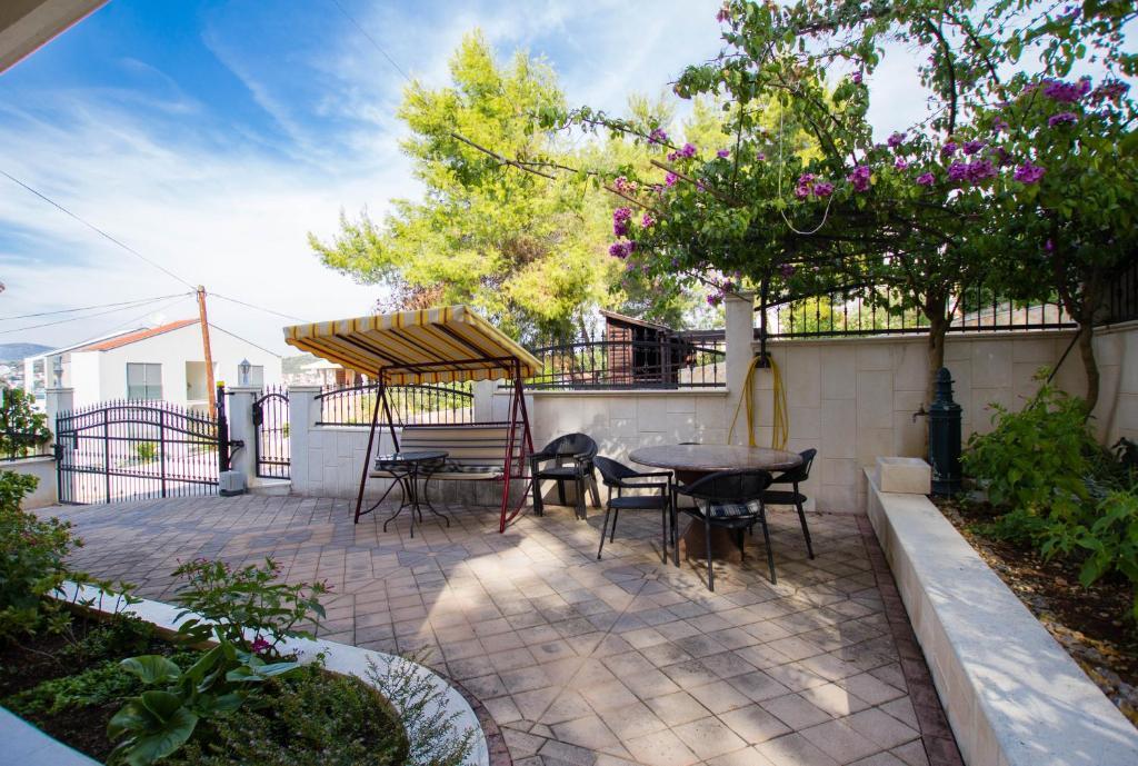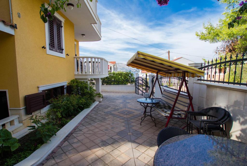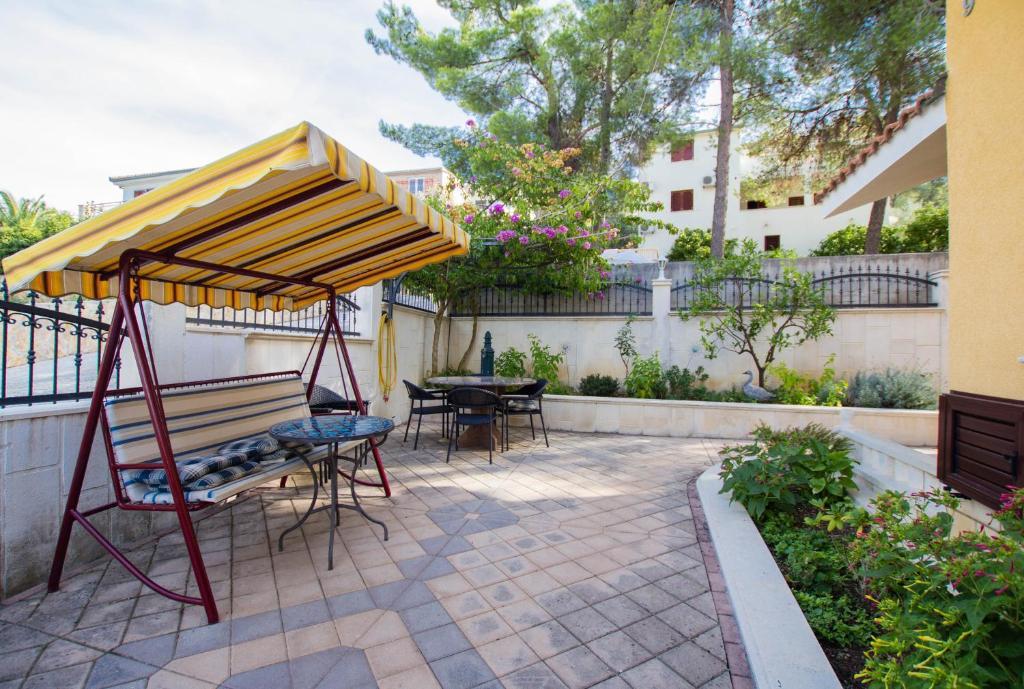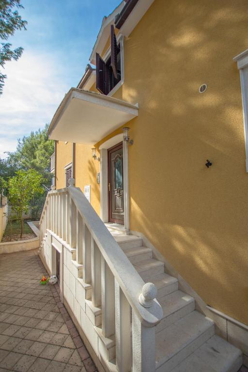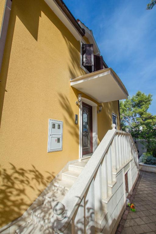 Les appartements Anika 1 et 2 sont situés sur l'île de Ciovo dans un quartier calme à seulement 50 mètres de la mer. L'établissement se trouve à 5 minutes à pied des premiers restaurants, boutiques et lieux de divertissement. Les appartements sont situés au 2ème étage pour lequel les clients ont une entrée séparée. Chaque appartement se compose de deux chambres et d'une salle de bains. Les deux chambres sont climatisées et ont accès à des terrasses donnant sur la mer et la forêt. Les chambres comprennent également la télévision avec la télévision par satellite et un accès Internet illimité. Chaque appartement a également sa propre cuisine, qui est équipée de couverts pour 6 personnes, d'un réfrigérateur, d'une bouilloire, d'un four et de tout ce dont vous avez besoin dans la cuisine. Le parking est inclus dans le prix. A votre disposition est un pavillon sous lequel se trouve un grill et une grande table pour 12 personnes idéal pour des repas communs et des rencontres. Il y a aussi une balançoire sous le pavillon et une petite balançoire pour les enfants.