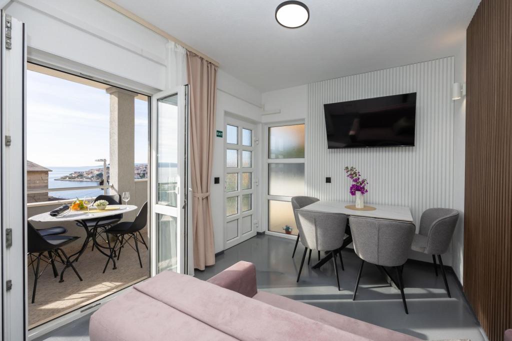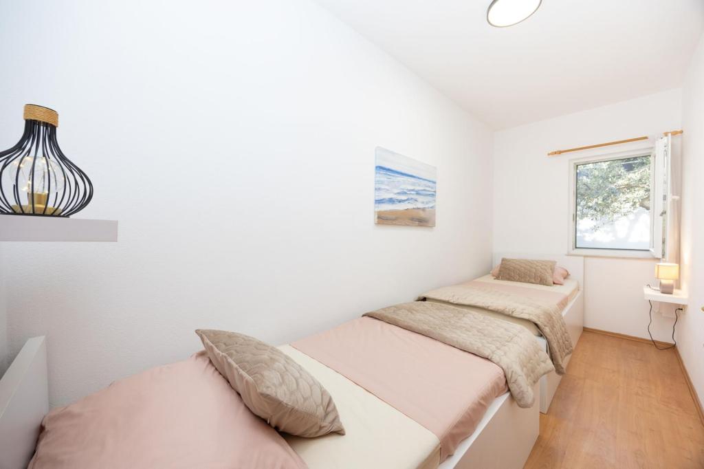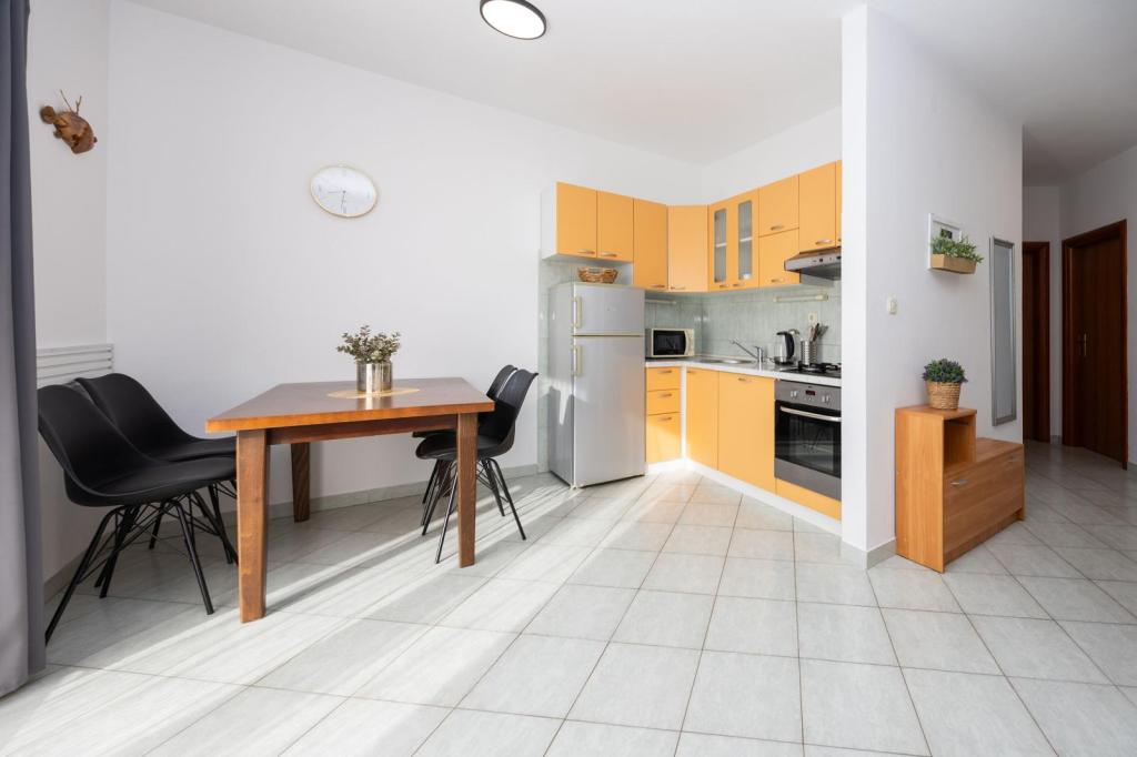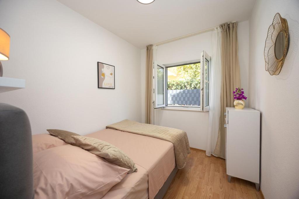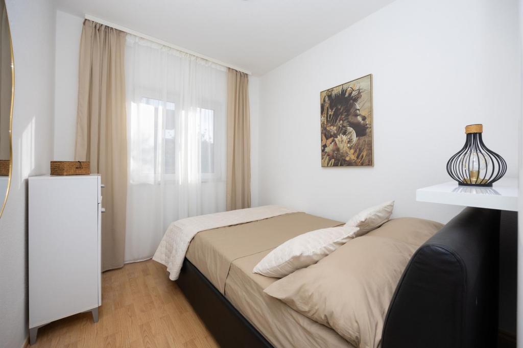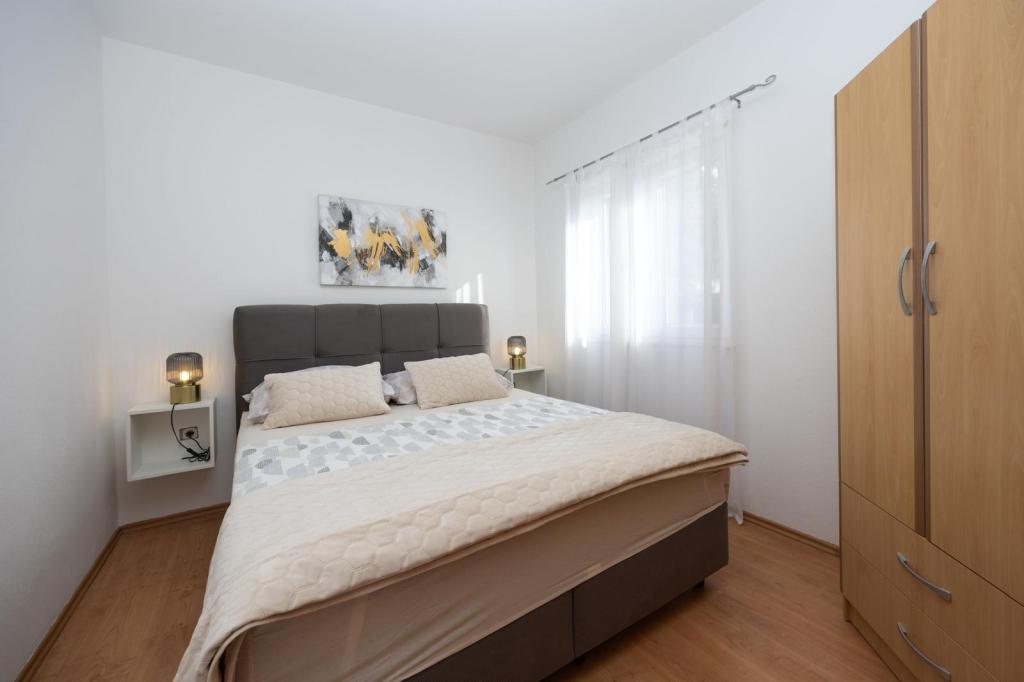 Apartments Nela sont équipés d'un hébergement confortable, situé sur le côté sud de la péninsule de Ciovo. Plus précisément, dans la baie Movarstica. La vue s'étend sur les îles de Solta et Drvenik. A proximité se trouve la belle ville historique de Trogir qui ravit par son architecture et de divertissement. A proximité il y a l'aéroport de Split (6 km), la ville de Kaštela (6km), Split (33 km). . Passez vos vacances dans un endroit calme, se détendre et profiter de la mer idyllique, Bokun bonne nourriture et un verre de vin et de l'eau. Apartments Nela sont le choix idéal pour vous. Famille Rajcic vous nestrepljivo prévu!
