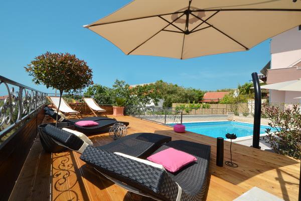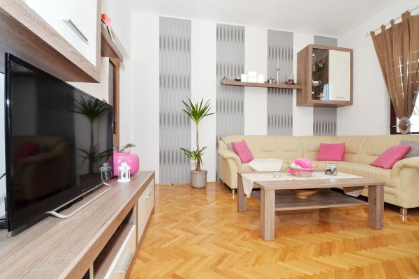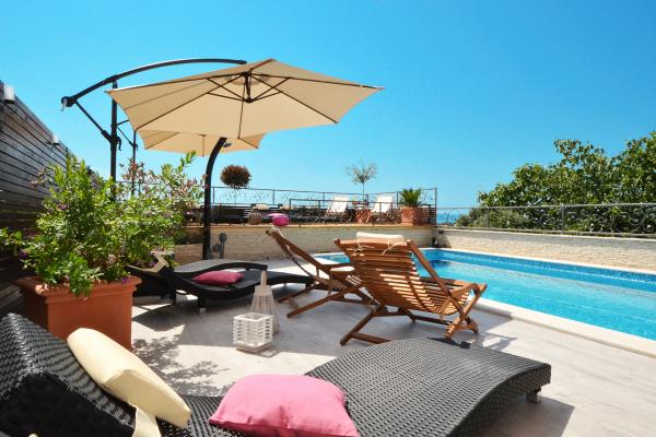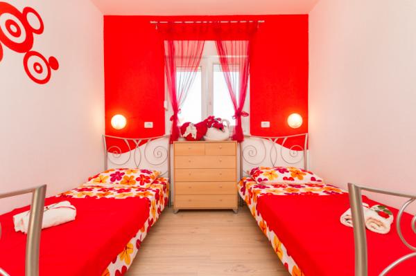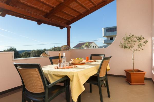 Les appartements Tomy sont situés à Okrug Gornji sur l'île de Ciovo (reliée par le continent), à seulement 550 mètres de la mer et à 200 mètres du centre-ville. Les clients ont deux appartements de trois chambres et un appartement de deux chambres. En face de la maison il y a une grande piscine d'hydromassage de 35m2 équipée de chaises longues, de balançoires, d'une table et de chaises et d'un barbecue.