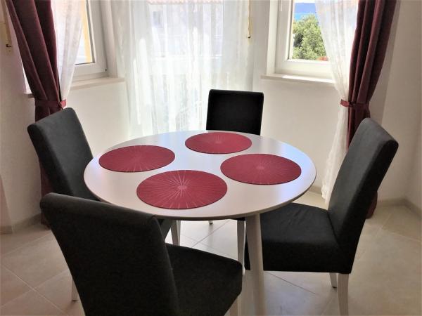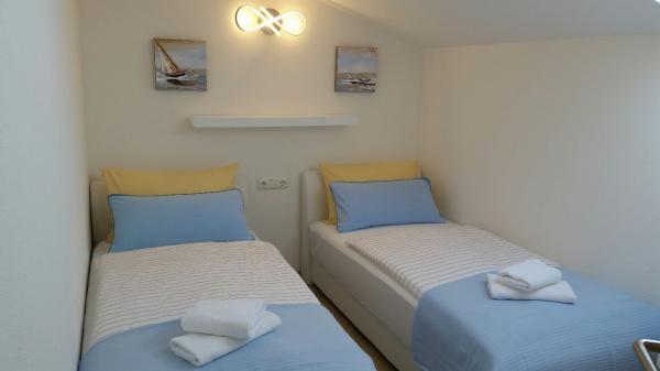 Villa Nikaraoni situé sur l'île de Ciovo, près de Trogir. Les appartements modernes et entièrement équipés dans la nouvelle maison avec seulement 4 appartements (rez-de-chaussée, premier étage et le grenier). La maison est située sur un endroit calme et ensoleillé, avec beaucoup de verdure dans la grande cour (1000 m2). Dans la cour des places de stationnement et barbecue. Les balcons sont spacieuses et avec vue sur la mer. Les appartements sont équipés d'une cuisine nouvelle et moderne avec lave-vaisselle, micro-ondes, grand réfrigérateur, la télévision par satellite, connexion Wi-Fi gratuite, lave-linge ... Le prix comprend le linge de lit et les serviettes (pas de plage) et le nettoyage.