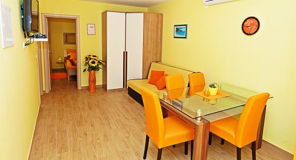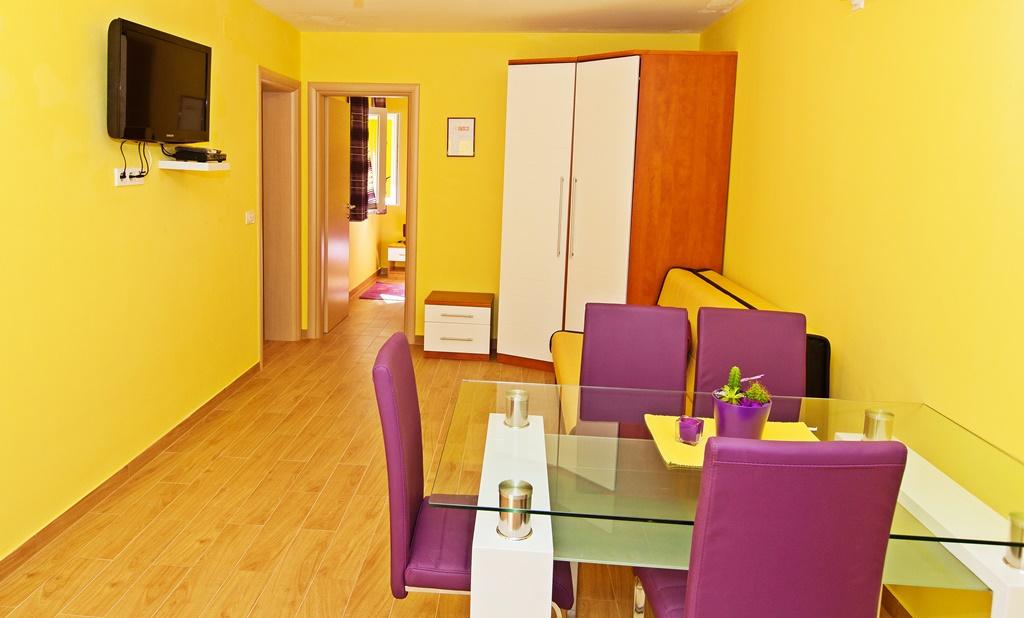 En savoir plus Unités d'hébergementLors de la réservation des appartements paient un acompte de 30%. Le reste à payer à l'arrivée. Heure d'arrivée 14 h et 22 h. Heure de départ de l'appartement est de 7 h- 10 h. Nous recevons animaux de compagnie avec supplément de 5 € par jour. La climatisation est incluse dans le prix. Services de saunas et jakuzzia est de 5 € par personne pour deux heures d'utilisation. Les enfants de moins de 15 ans peuvent utiliser gratuitement le jacuzzi accompagnés de leurs parents. Les draps et les serviettes sont inclus. Serviettes changées deux fois par semaine.