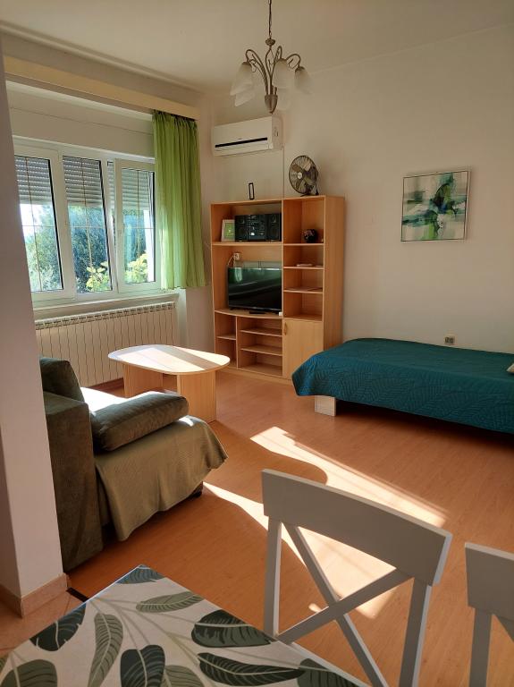 Appartements Sandra sont situés dans une maison de famille dans le quartier des villas de Crikvenica. Sont à 1,5 km de la ville et il y a seulement 2 minutes à pied de la plage de sable. A proximité se trouve une grande variété de divertissements et de loisirs, supermarché, restaurant, un petit port, Thalassothérapie. Les clients peuvent choisir entre deux appartements modernes: appartement au rez-de-chaussée avec entrée séparée et avec la terrasse dans le jardin, ou appartement au 1er étage avec un balcon donnant sur la mer. Dans lappartement au rez-de-chaussée les petits animaux de compagnie sont les bienvenus !