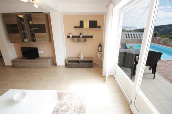 Nouveau appartement meublé avec une piscine de 28m2 dans le lieu municipalité de Vinodol Kostelj. Distance du centre de Crikvenica est 4000m. La cour est entièrement clôturé et dispose d'une place de parking. Dans la cour est un grand barbecue avec patio, chaises longues et parasols à la piscine. Les animaux sont acceptés supplément de 6e par jour.