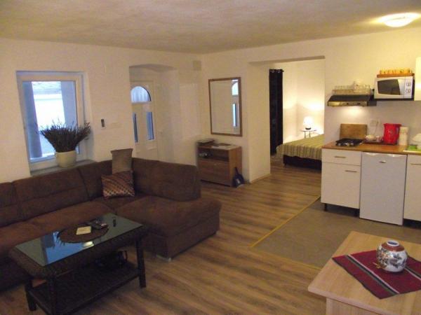 Les appartements sont situés dans un art de trois étages Nouveau dans le centre et au cours de la première moitié du 2012 e Quelle que soit. sont entièrement reconstruit. Près de la maison est une boutique, un restaurant avec terrasse et bar, et les galeries, les musées et les églises. Le parking est situé à environ 200 mètres, non gardé, ne peut pas être réservé gratuitement. Les animaux sont admis avec l'annonce précédente. Studio est situé au rez de chaussée, la taille de 40 m2. En face se trouve une terrasse couverte qui appartient à l'appartement. L'appartement se compose d'une grande chambre avec un lit double, salle de séjour avec canapé-lit pour deux personnes et salle de bains avec douche et WC. En vertu de la chambre et le salon est recouvert de stratifié bois. L'appartement est équipé de la climatisation (chauffage / refroidissement), la télévision par satellite, coffre-fort, cuisine. En Appartement 1 et 2 qui sont situés sur la deuxième ou troisième étage est entré par une grande terrasse ensoleillée. Appartement 1, la taille de 40 m2 se compose d'une chambre à coucher, salon et salle de bains. Chambre avec lit double dispose d'un placard intégré dans. Le salon est situé sur un canapé-lit pour deux