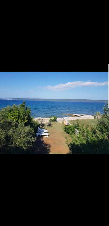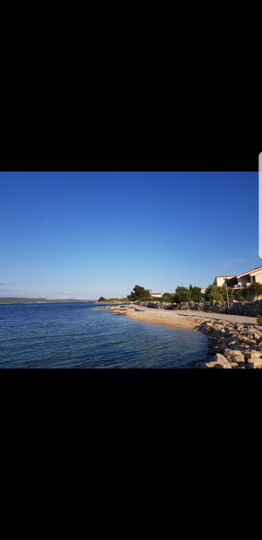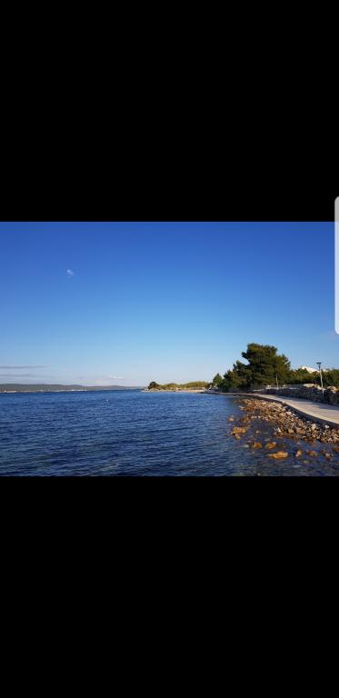 Première rangée de la mer, 2 appartements dans une maison jumelée familiale au rez-de-chaussée et au premier étage sur l'île de Pašman, Dobropoljana. Profitez de vacances en famille directement sur la plage de galets, avec jardin, transats, douche extérieure, barbecue, WIFI, climatisation, parking. Vous pouvez réserver la maison entière ou un appartement séparé au rez-de-chaussée ou à l'étage. Avec sa situation exceptionnelle en bord de mer, cet hébergement de vacances se démarque de la majorité. Depuis le jardin, vous accédez directement à la plage de galets où vous pourrez profiter d'un magnifique lever ou coucher de soleil. La mer est cristalline, propice à la baignade et à la plongée. L'île de Pašman est connue pour ses belles plages de sable et ses nombreux sentiers propices au cyclisme. Un sentier impressionnant vous attend ici jusqu'au plus haut sommet de l'île de Bokolj (274 m), d'où vous pourrez profiter d'une vue sur Zadar et le parc national de Kornati.
