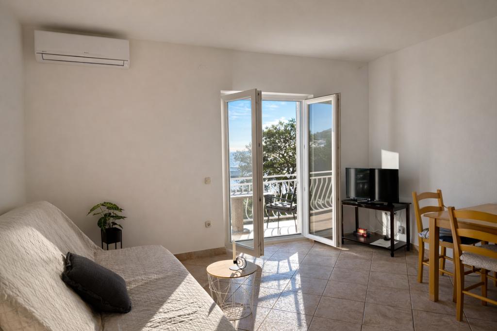 Vacances de rêve, vue mer....silence. L'hôtesse est très agréable, elle n'est pas dérangeante, mais elle est utile pour tout ce qui nous intéressait. La plage à l'ombre n'est qu'à une minute... mais tout est super. l'appartement a tout ce dont vous avez besoin .. c'était très propre.