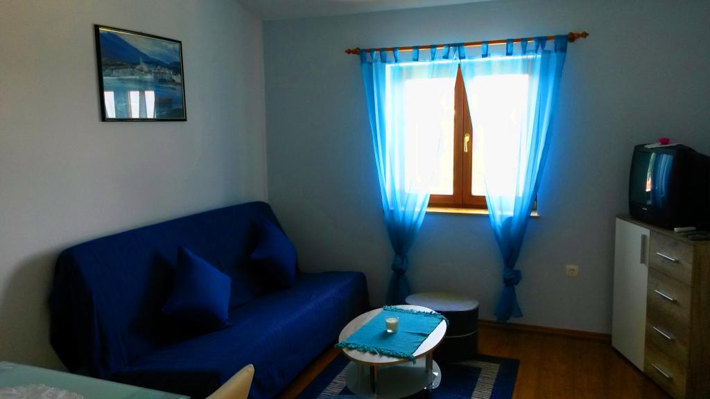 L'appartement se situe dans une maison de trois logements avec vue sur la mer. La plage est à 150 m. L'appartement dispose d'une entrée indépendante et se compose d'une cuisine, d'un salon, d'une chambre et d'un balcon couvert.