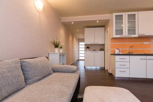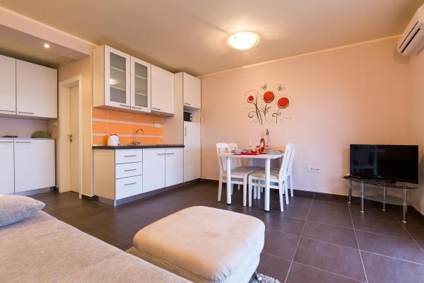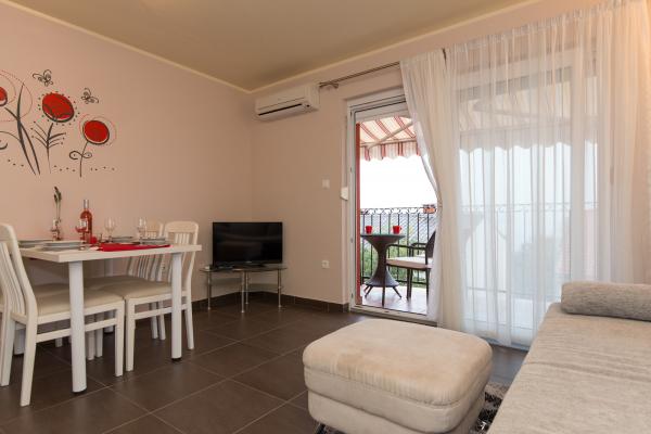 Nouveau appartement moderne 2 +2, Climatisation, TV LCD, satellite, WiFi gratuit, parking Appartements Zdenka sont situés dans une banlieue tranquille de Crikvenica, en Dramalj, à seulement 300 mètres de la mer, avec place de parking privé gratuit dans la cour spacieuse clôturé. Notre maison vous propose des suites confortables et climatisées pour 4 personnes (2 +2), 40m2 avec balcon spacieux, avec Internet sans fil gratuit et télévision LCD par satellite et une cuisine entièrement équipée et une chambre avec un placard et un grand lit.