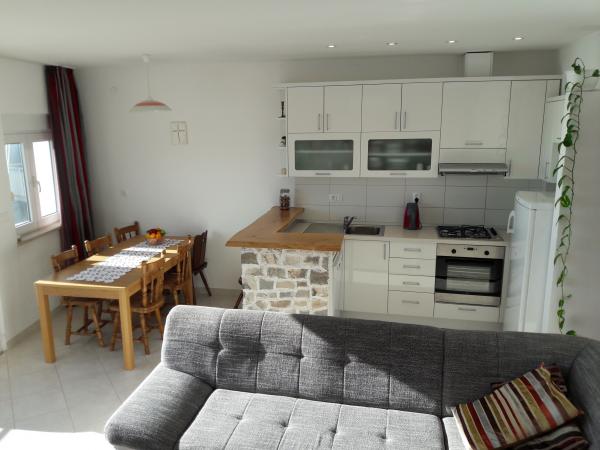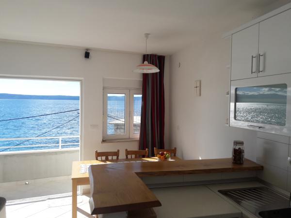 L'établissement est situé dans la première rangée de la mer est à seulement 1 min à pied de la plage et du centre. Drasnice connue pour ses belles plages de sable, des sentiers, des soirées de pêche animés randonnée et sont idéales pour des vacances en famille. Ils sont situés à une heure de route de Split, un peu plus de 2 heures de route de Dubrovnik ou 4 heures de route à Sarajevo. L'appartement est équipé, situé au deuxième étage. Il se compose de: un grand salon avec cuisine et salle à manger, trois chambres avec deux lits, deux salles de bains et une petite salle de stockage.