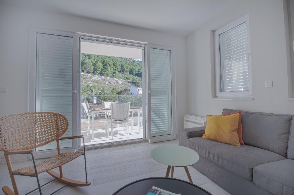 Appartements meublés avec goût, à environ 70 mètres de la mer et à proximité de toutes les commodités. Situés en deuxième ligne, dans une rue calme, ils se trouvent à une minute à pied de la plage principale, où vous trouverez restaurants et boutiques. Le ferry pour Hvar part de Donja Vale, dont l'embarcadère est à environ 200 mètres de l'appartement.