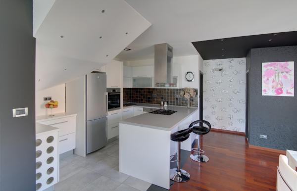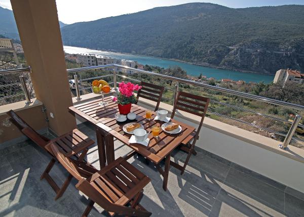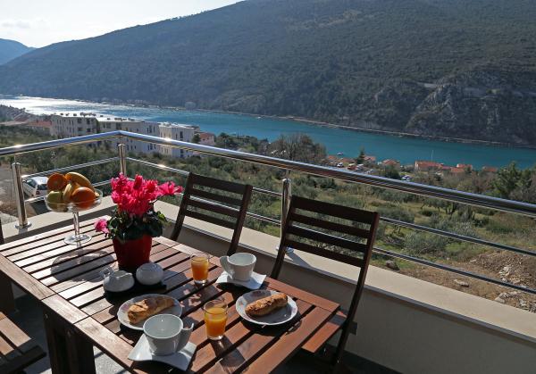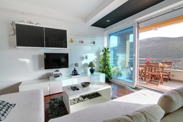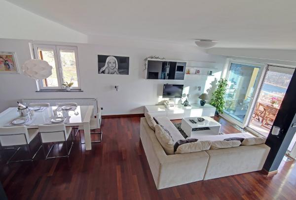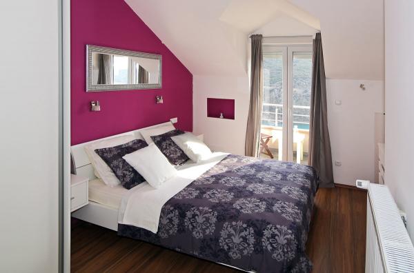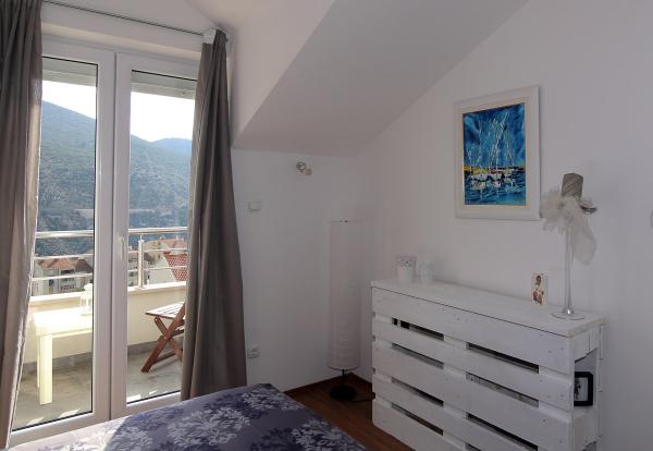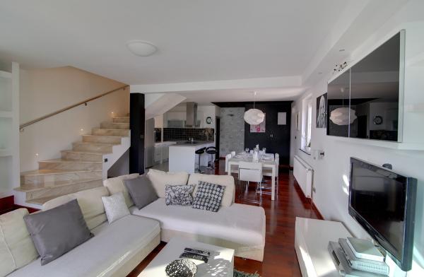 Moderne de deux étages appartement de luxe meublé dans la maison, 130 m2 est situé dans la Nouvelle Mokošica, à seulement 12 km de la vieille ville de Dubrovnik. Situé dans un village calme à proximité de l'olive bosquets, arbres et de verdure, tandis que la terrasse et balcon offre une belle vue sur la rivière Ombla, ACI Marina et la colline Srd. A l'étage supérieur il ya deux chambres doubles (chambre double), une salle de bains avec douche et une chambre avec salle de bains (salle de bains privative) est équipé d'un bain à remous pour deux personnes et un sèche-cheveux et d'un balcon privé. A l'étage inférieur se trouve dans une toilette séparée et une cuisine moderne entièrement équipée (cuisinière, four, lave-vaisselle, lave-linge, réfrigérateur, micro-ondes, vaisselle, bouilloire électrique, grille-pain), salle à manger avec un salon spacieux avec télévision à écran LCD, d'un camion interne et terrasse . L'appartement est climatisé, avec Internet sans fil gratuit (Wi-Fi), parking privé et un barbecue. La plage la plus proche est à 5 km, épicerie de 150 m de rayon de 300 mètres il ya des bars, fast food, bistro.