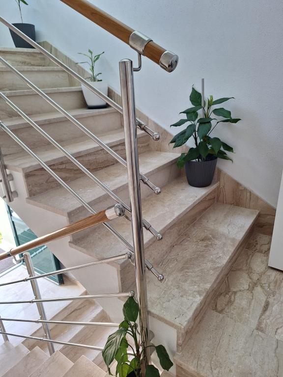 Je le recommande vivement ! Nous avons passé 11 jours merveilleux dans une propriété bien entretenue, parfaitement adaptée aux besoins des clients. Les appartements sont très propres, confortables et bien équipés ; la cuisine est entièrement équipée. Depuis la terrasse, vous pourrez admirer la magnifique vue sur la mer tout en sirotant votre café du matin. Un espace barbecue et des tables sont également à votre disposition, parfaits pour les soirées conviviales. Dans le quartier, il y a tout ce dont vous avez besoin : commerces, boulangeries, restaurants et de nombreux endroits intéressants à visiter. (nous recommandons particulièrement le restaurant Dalmacija avec une cuisine délicieuse et le bar de plage atmosphérique avec de la bière pression et de la bonne nourriture) La plage de sable est à quelques pas. Les hôtes sont incroyablement gentils, accueillants et toujours serviables ; ils nous ont vraiment fait sentir qu'on s'occupait d'eux. Cet endroit a tout ce qu'il faut pour passer de superbes vacances, et nous reviendrons sans hésiter !