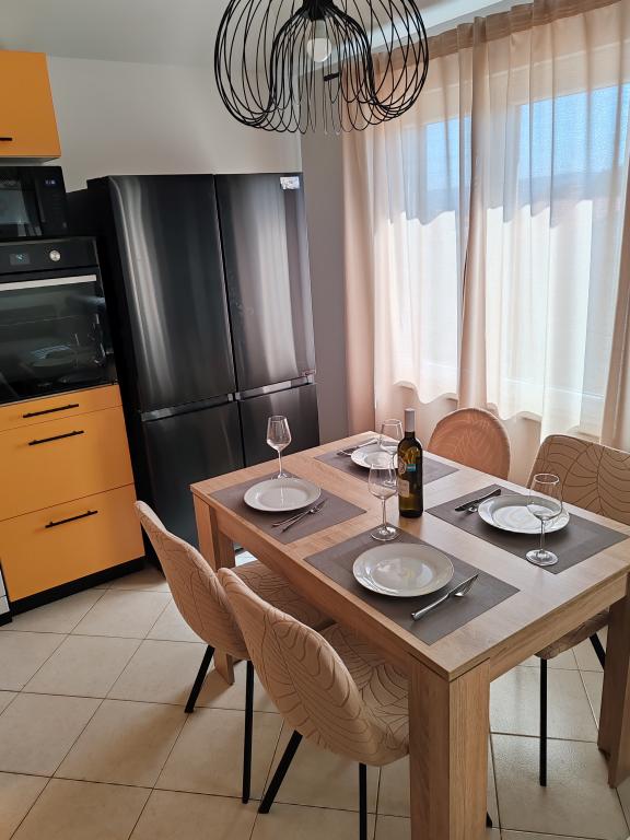 Les appartements sont situés dans un quartier calme Duce, la deuxième rangée de magistrale.Moderno meublé et équipé avec tout le nécessaire pour la odmor.Posebno parfait pour les familles avec enfants en raison de la grande terrasse et la proximité de la plage (pas besoin de traverser la route). Installation est située à 15 minutes. à pied du centre ville et à 2 min à pied de plaže.Mogućnost de louer des bateaux, jet-skis, l'organisation de voyages et beaucoup d'autres divertissements.