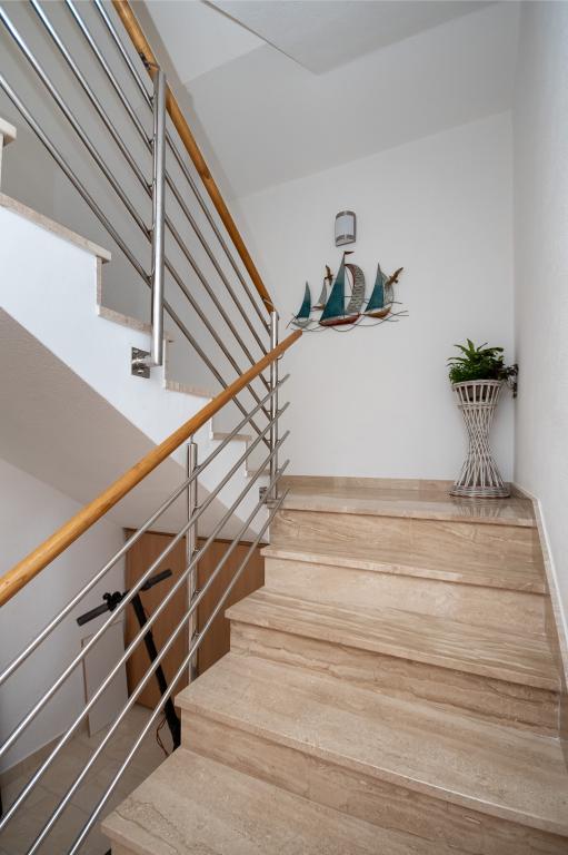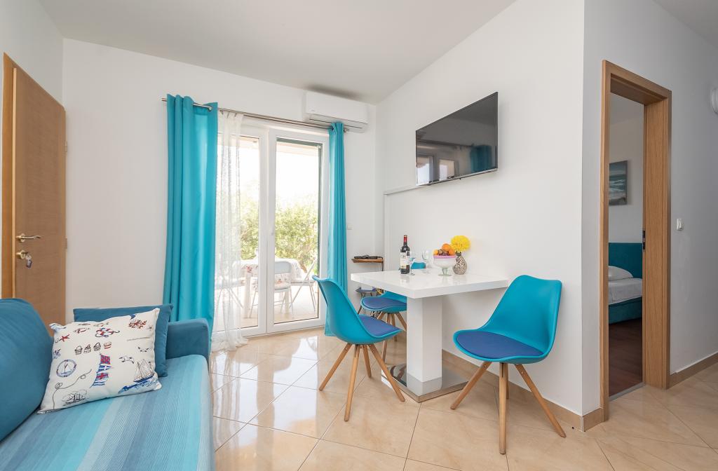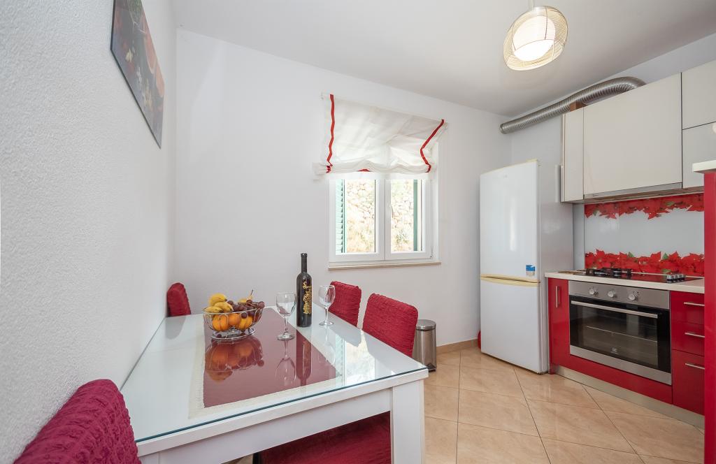 Les appartements Rejo sont situés dans la petite ville de Dugi Rat, sur la Riviera d'Omis, dans un environnement calme avec de belles vues panoramiques sur la mer et l'île de Brac. Du centre de la place, nous sommes à environ 400 mètres et toutes les installations touristiques sont situées à Bizini. Nous avons 2 appartements à louer. Chaque appartement est adapté pour un maximum de 4 personnes, le plus approprié pour 2 adultes et 2 enfants. Les deux appartements sont situés au premier étage. Chaque appartement comprend une chambre avec un grand lit double, un salon avec un canapé-lit pour 2 personnes, une cuisine, une salle de bains, un balcon avec vue sur la mer et une terrasse du côté nord de la maison.