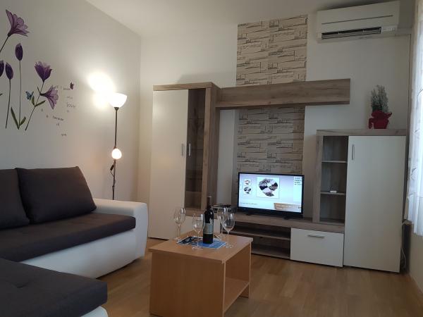 Appartements Mihatović Fažana est situé dans Fazana (Région Istra). En saison 2018, nous vous proposons une piscine avec banc tourbillon 7 5x3. 5 MÈTRES 2x2 mètres pour les enfants. Il se compose de 4 appartements: Appartement pour 8 personnes avec 3 chambres 2 lits supplémentaires Appartement pour 4 personnes avec 1 chambre et 2 lits supplémentaires, Appartement pour 8 personnes avec 3 chambres 2 lits supplémentaires Appartement pour 6 personnes avec 2 chambres chambre 2 lits d'appoint. Appartements Mihatović Fažana du centre de 300 m et 300 m de la plage. Contenu: SAT / TV, climatisation, internet wifi, fumeur, animaux acceptés, etc.